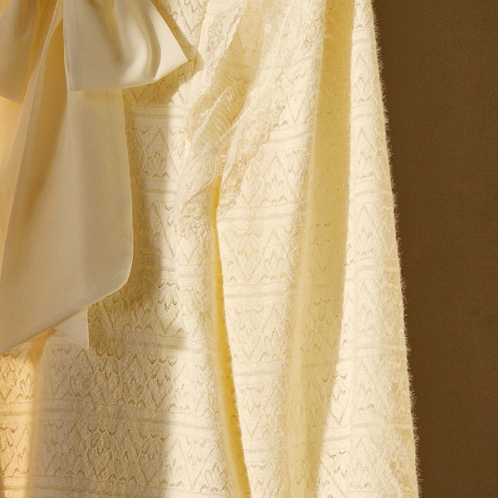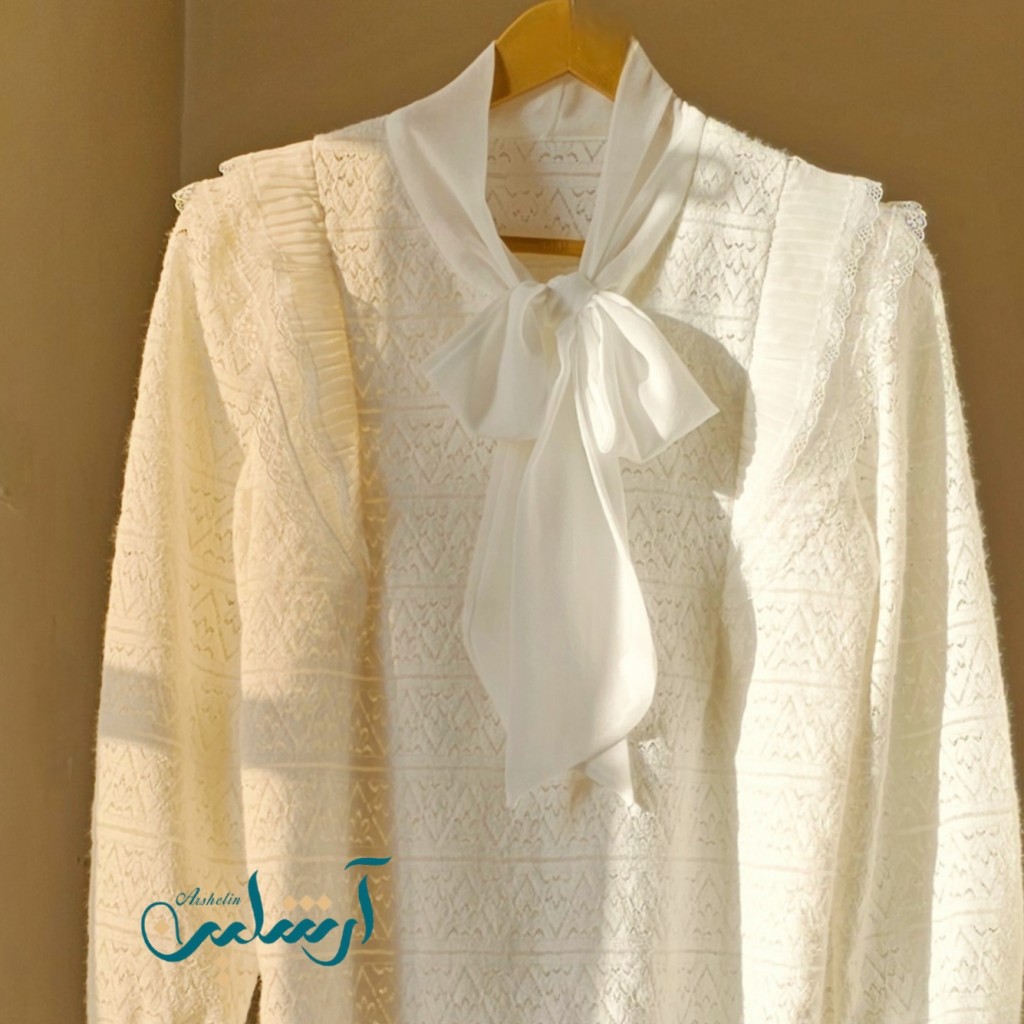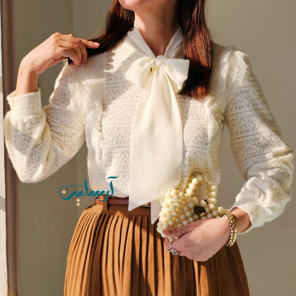 شومیز گیپور موهر وارداتی، بسیار لطیف، با یه پاپیون زیبا از جنس حریر✨️آستر نداره باید با لباس زیر رنگ تن یا تاپ بپوشین✨️