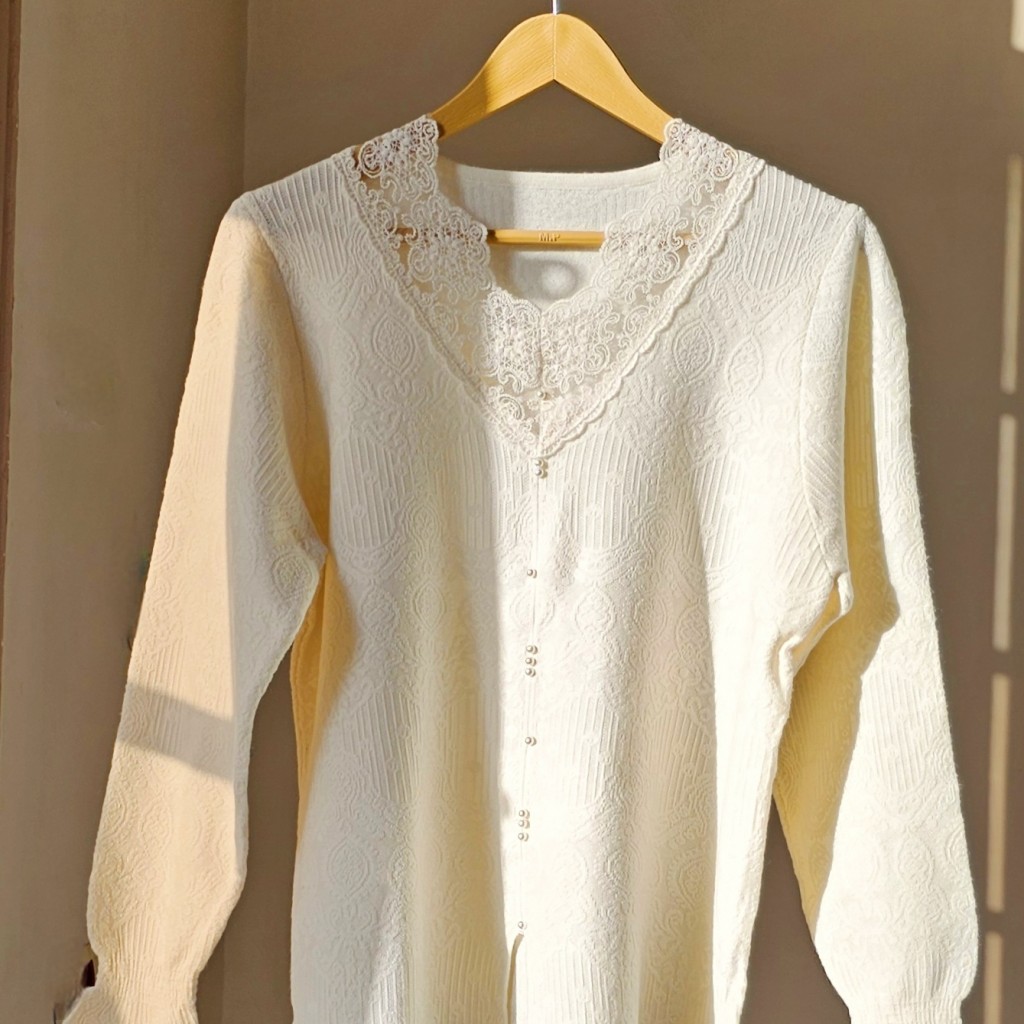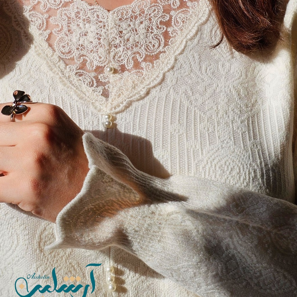 شومیز بافت مجلسی وارداتی،بافت طرح دار، باضخامت متوسط گرم وسبک و لطیف، مرواریدها پانچ شده هستن ریزش ندارن و جلوی یقه خامه دوزی کارشده.✨️