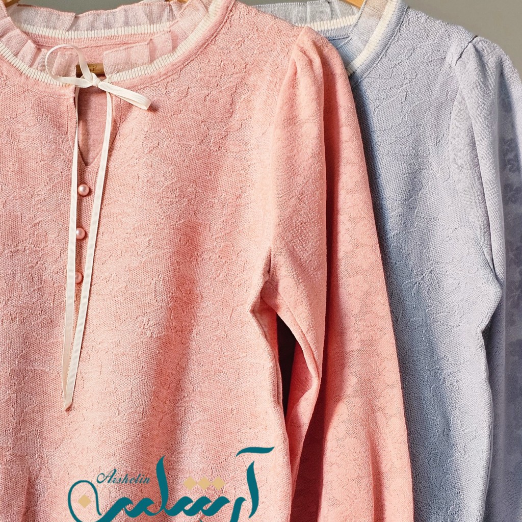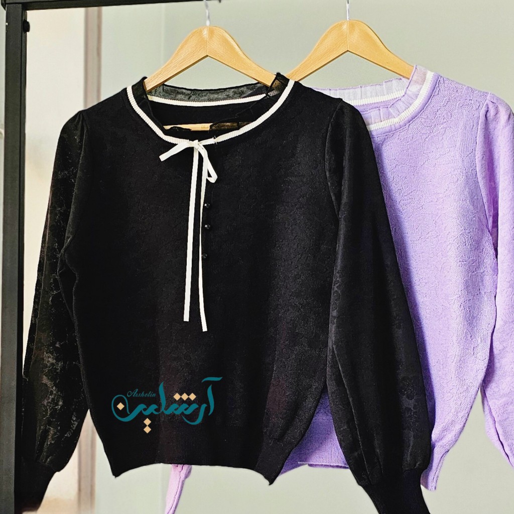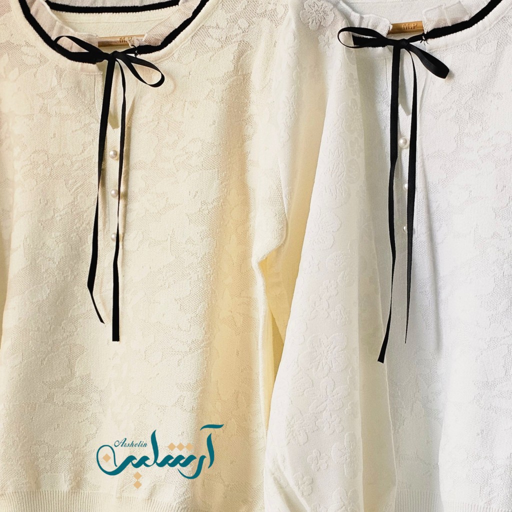 ✨️ شومیز بافت وارداتی،ظریف و لطیف، دور یقه تور کار شده، مرواریدهای بافت پانچ شده هستن ریزش ندارن، جنس آستین گیپور، جلوی بافت(بافت طرح دار)،پشت بافت(بافت ساده)