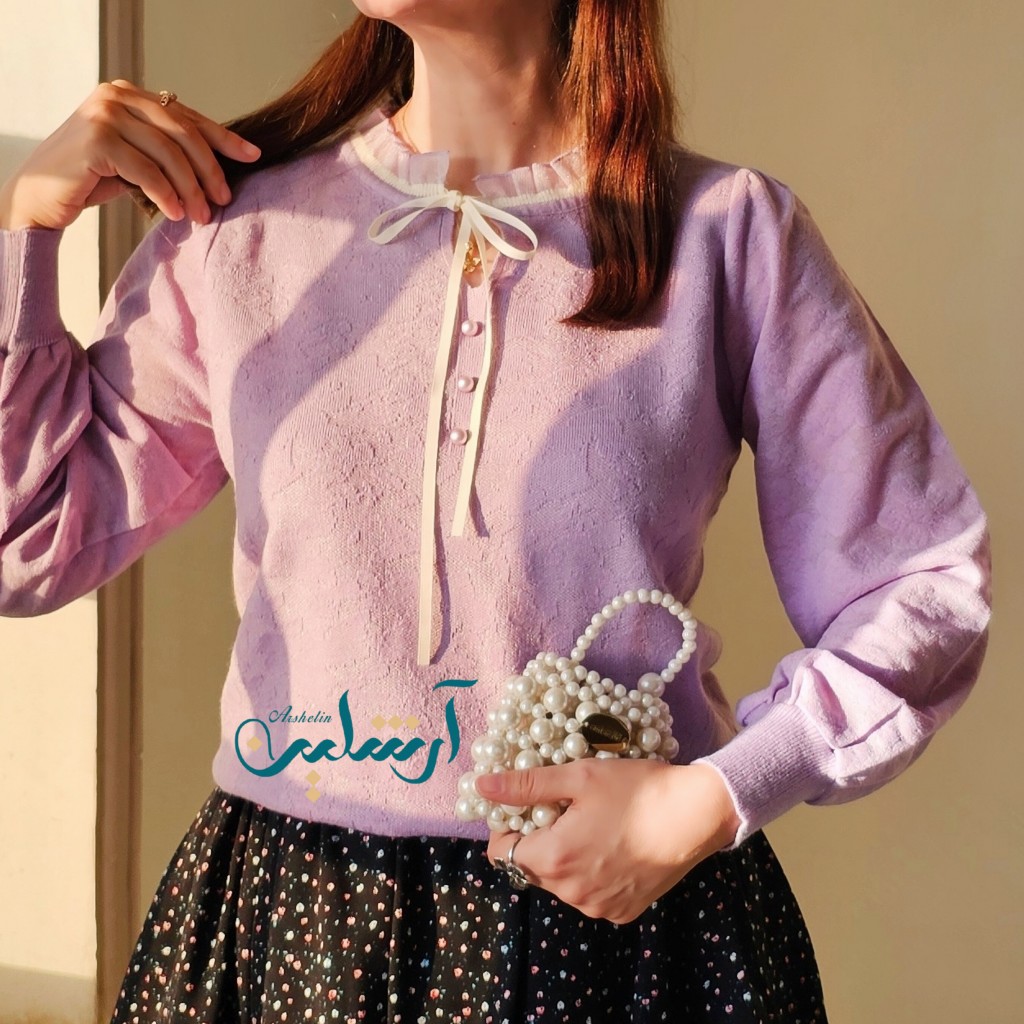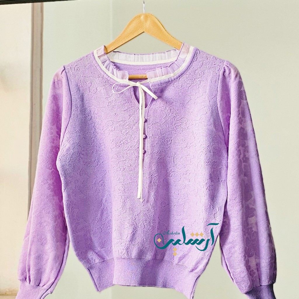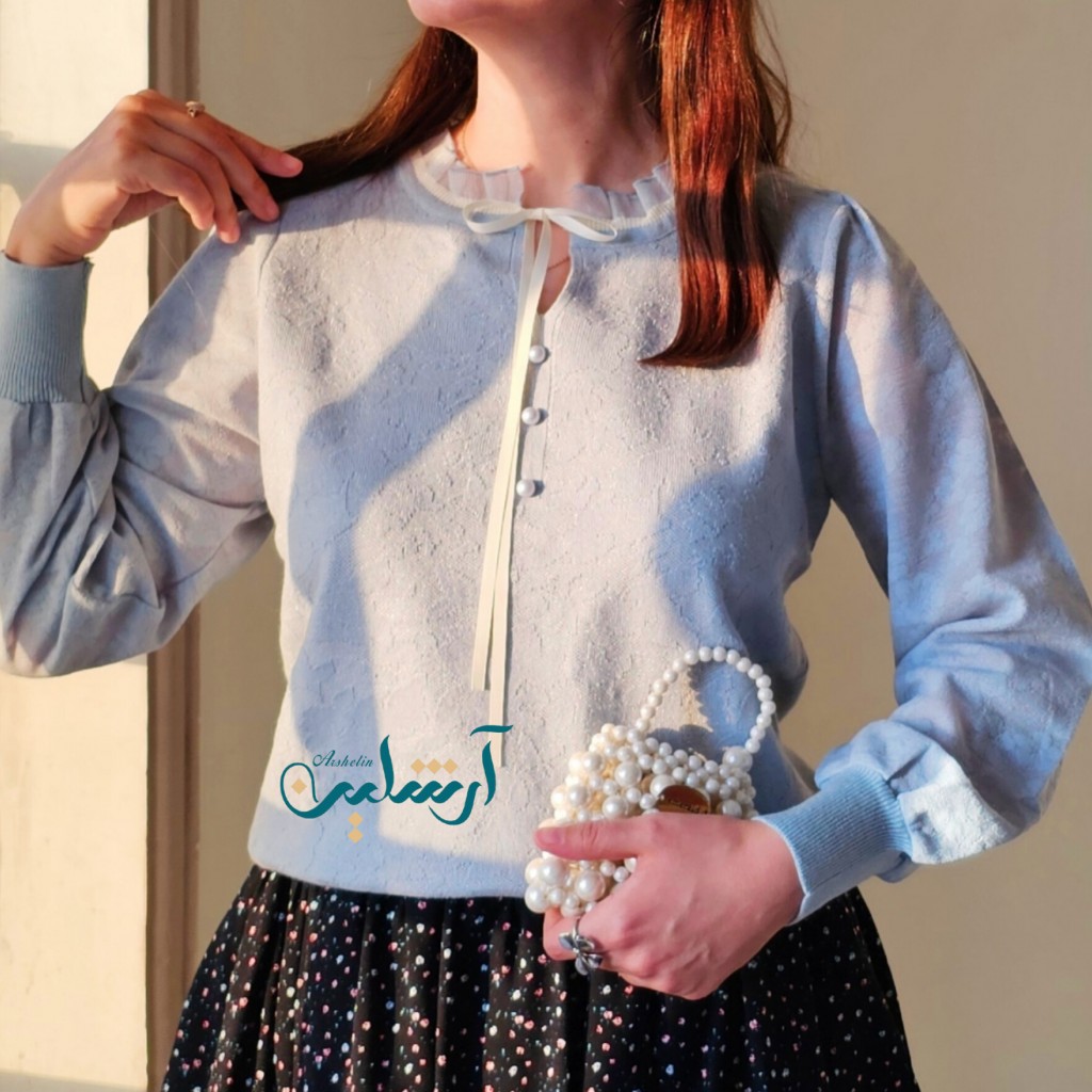 ✨️ شومیز بافت وارداتی،ظریف و لطیف، دور یقه تور کار شده، مرواریدهای بافت پانچ شده هستن ریزش ندارن، جنس آستین گیپور، جلوی بافت(بافت طرح دار)،پشت بافت(بافت ساده)