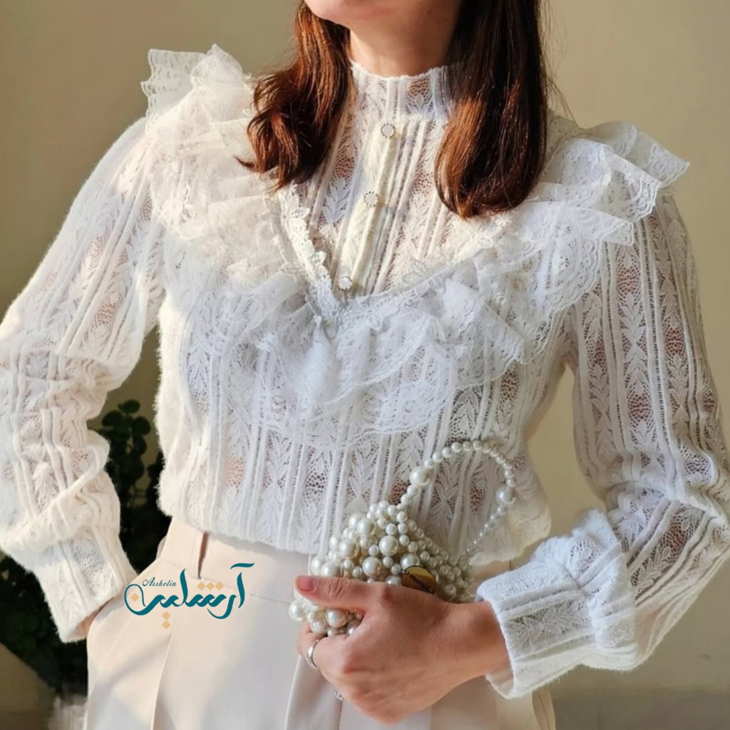 ✨️شومیز وارداتی با جنس گیپور موهر،لطیفه اصلا تنو اذیت نمیکنه✨️