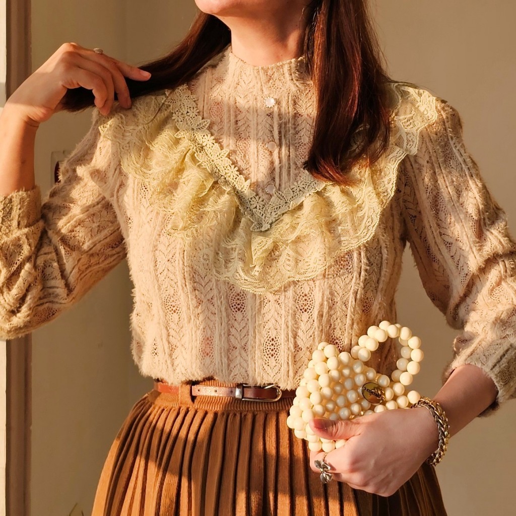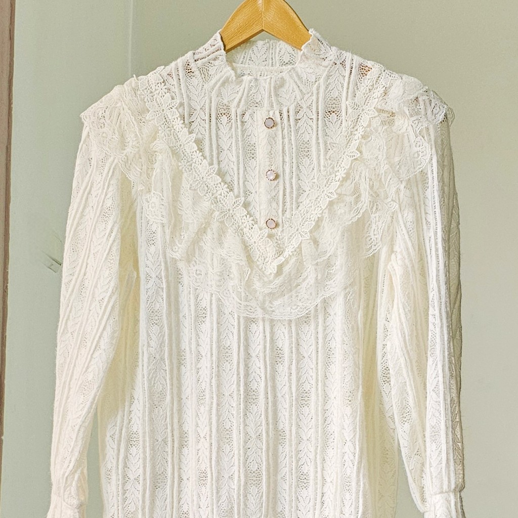 ✨️شومیز گیپور موهر مجلسی وارداتی، بسیار لطیف، با چین های خیلی کیوت، آستر نداره باید با لباس زیر رنگ تن یا تاپ بپوشین.