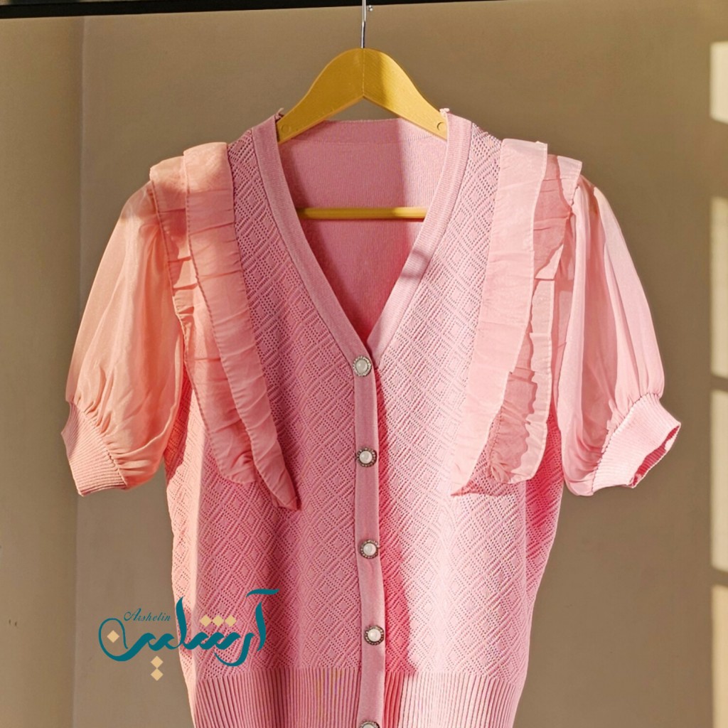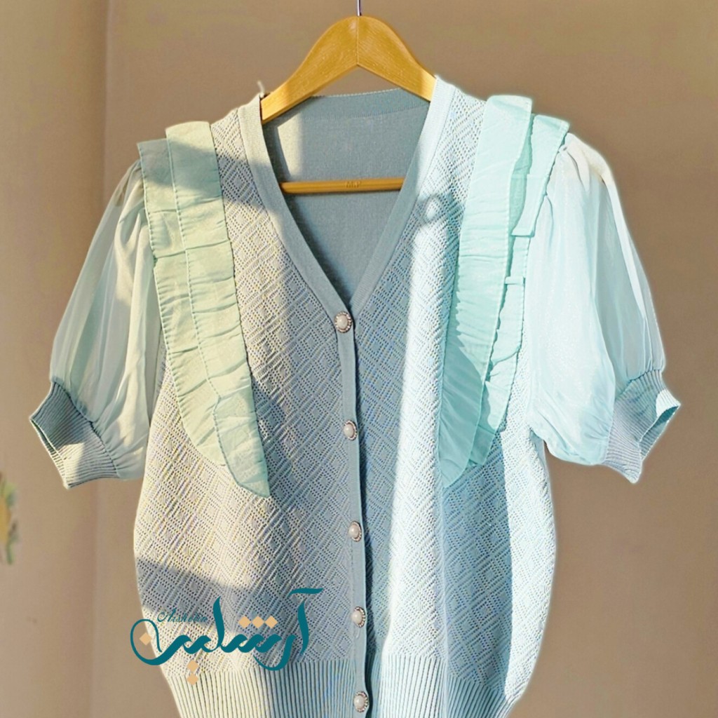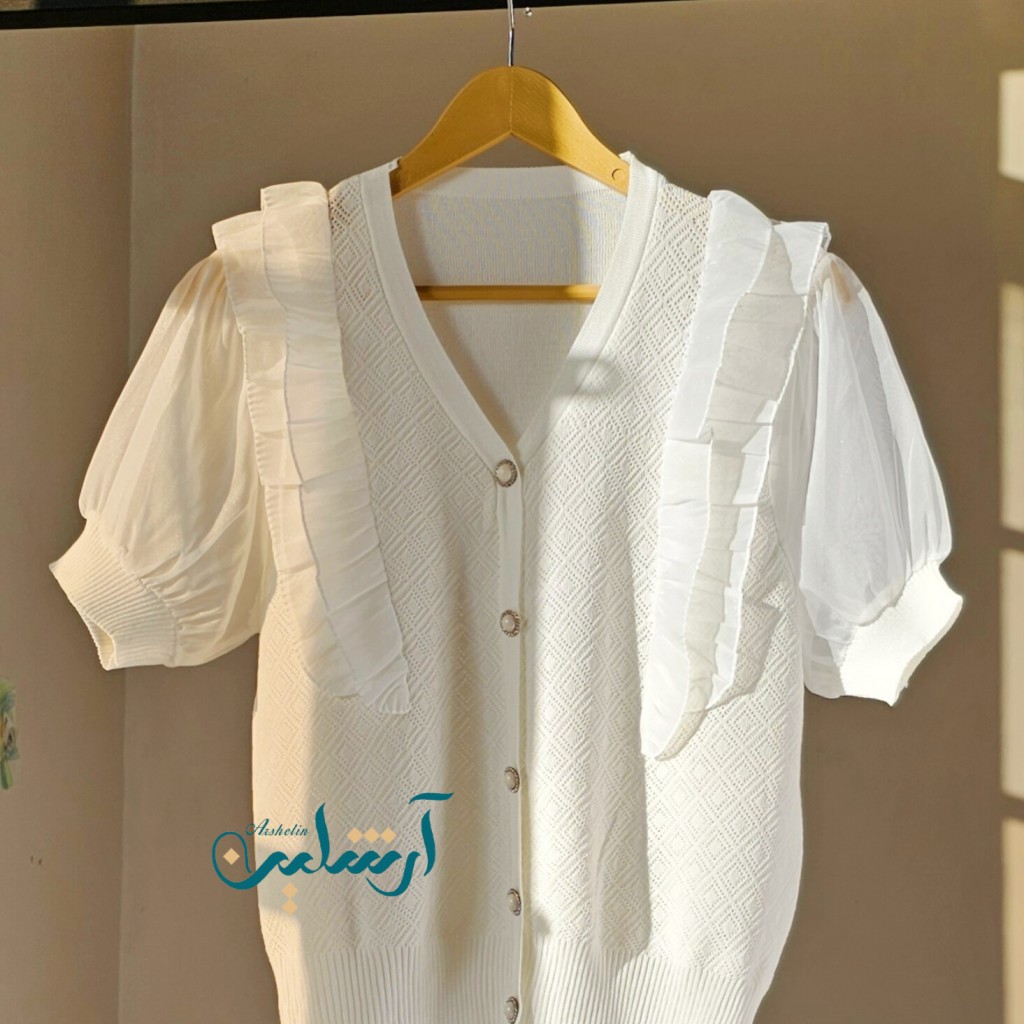 بلوز بافت کریستال سوزنی وارداتی،دکمه نما، آستین پفی حریر، جلوی بافت سوزنی، پشت بافت ساده ✨️