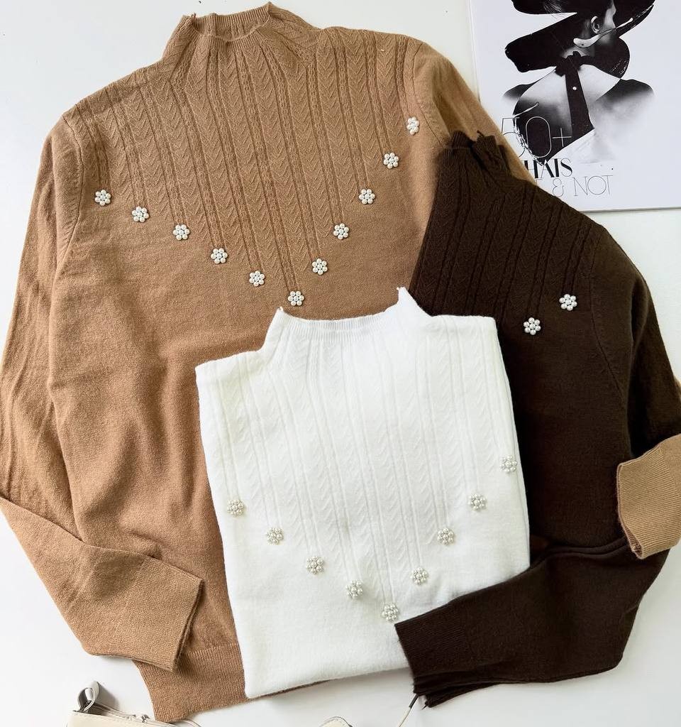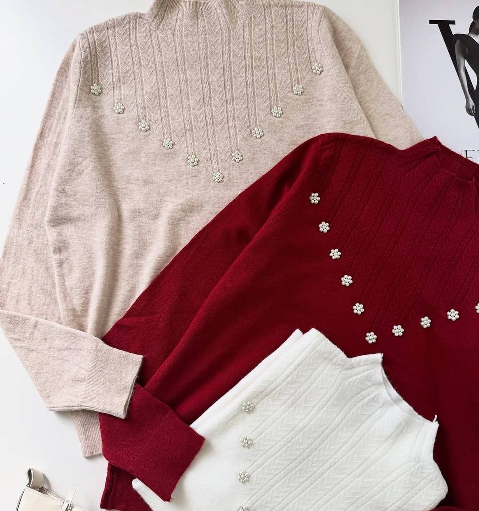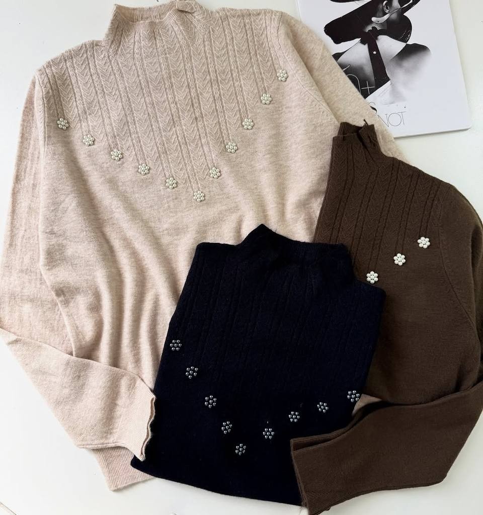 ✨️ بلوز بافت وارداتی،ظریف و لطیف ، یقه ایستاده، مرواریدهای بافت همه پانچ شده هستن ریزش ندارن✨️