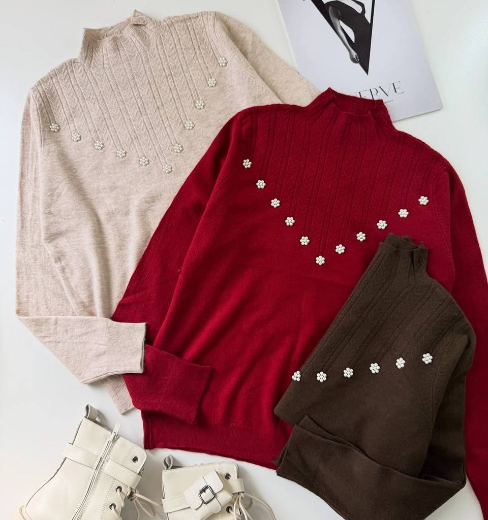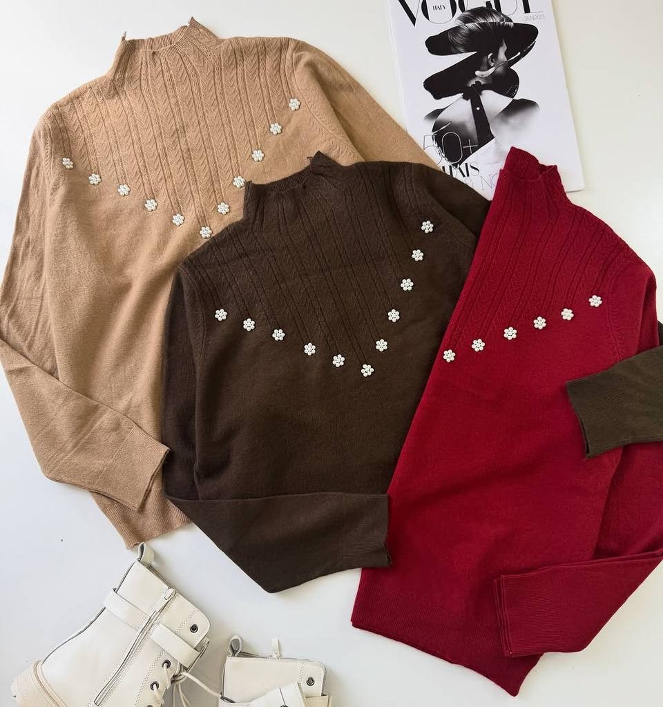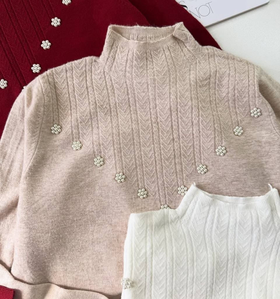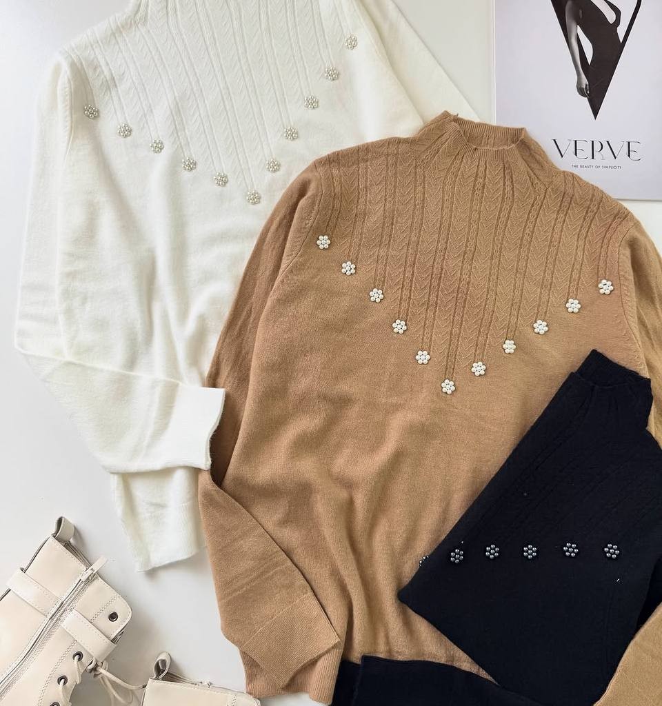 ✨️ بلوز بافت وارداتی،ظریف و لطیف ، یقه ایستاده، مرواریدهای بافت همه پانچ شده هستن ریزش ندارن✨️