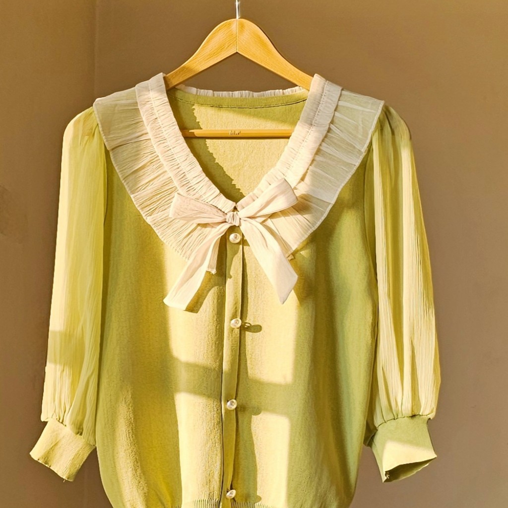 شومیز بافت وارداتی کریستال با آستین حریر ،شومیز بافت ظریف و لطیف وارداتی(ضخیم و خیلی گرم نیست حتی تا عید هم قابل استفاده هست)، دور تا دور یقه حریر کار شده ،دکمه ها تزیینی هستن،سرآستین شومیز بافت کار شده✅️