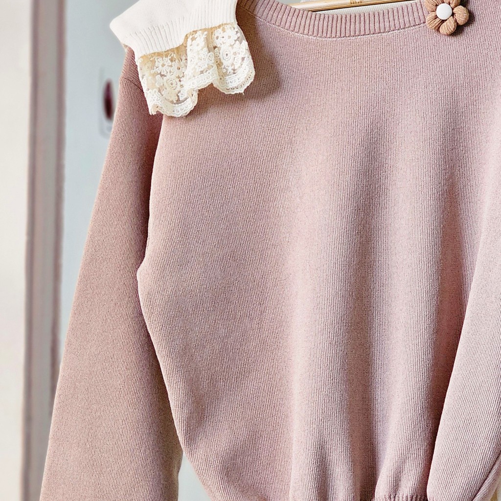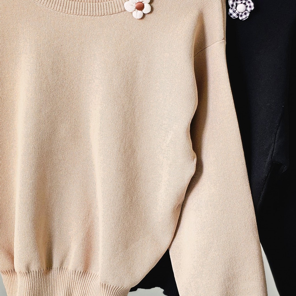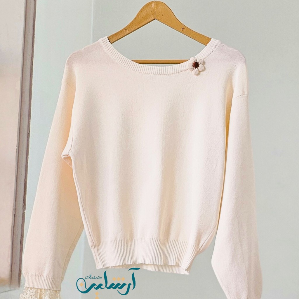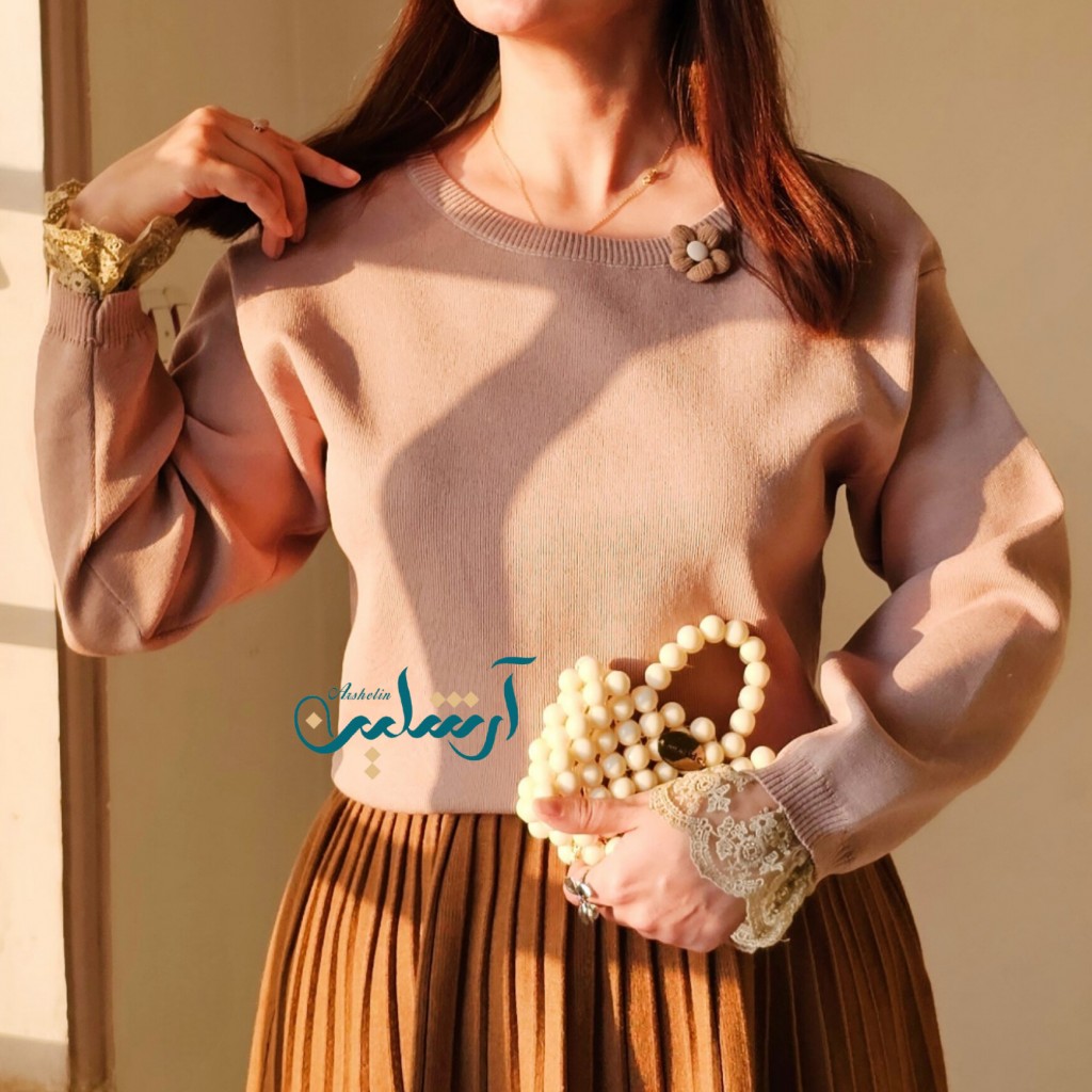 ✨️ بلوز بافت یقه گرد وارداتی،لطیف با ضخامت متوسط، یقه گرد باز، سرآستین خامه دوزی شده