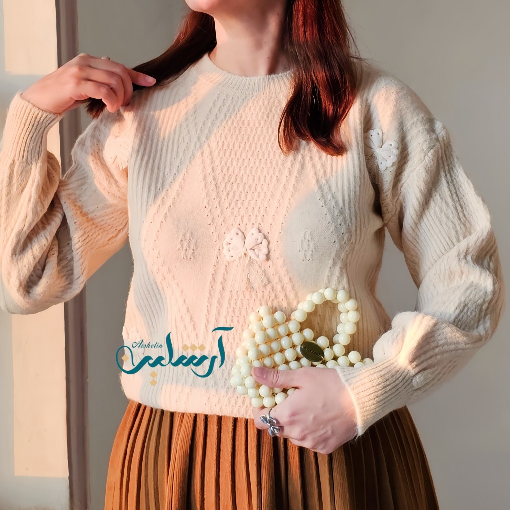 ✨️ پلیور بافت مجلسی وارداتی، پلیور بافت بسیار لطیف و گرم بالا وارداتی ،با پاپیون های کیوت