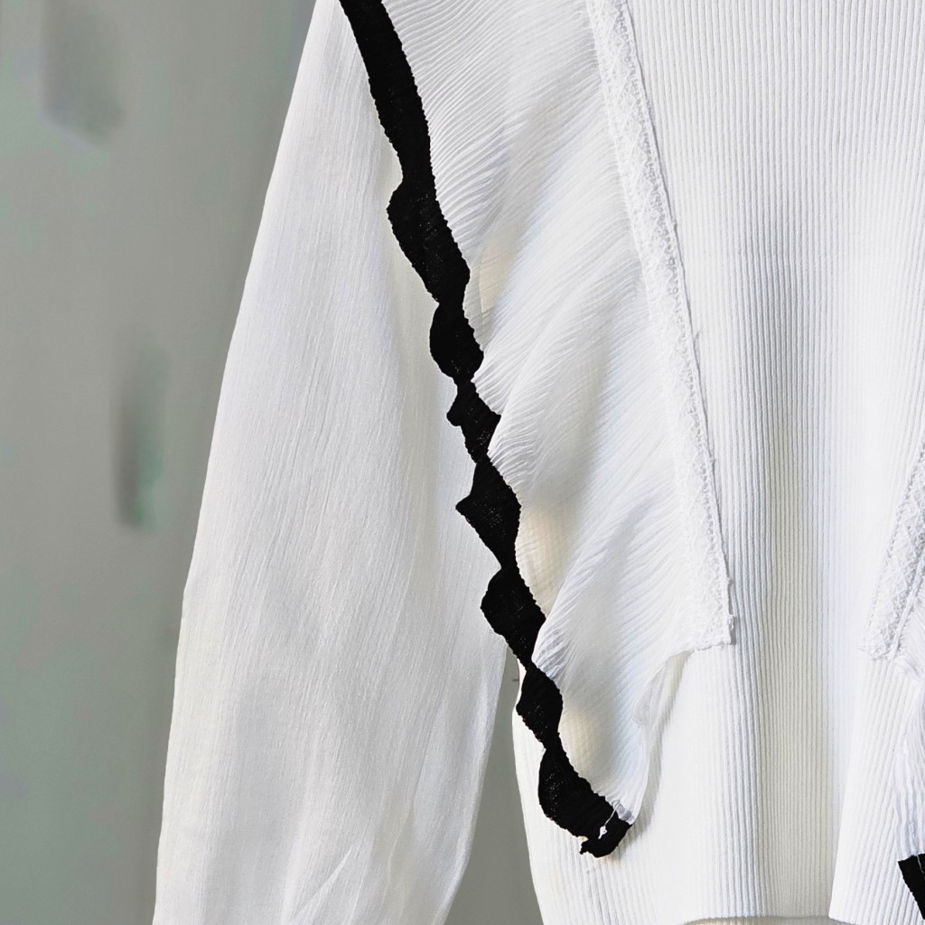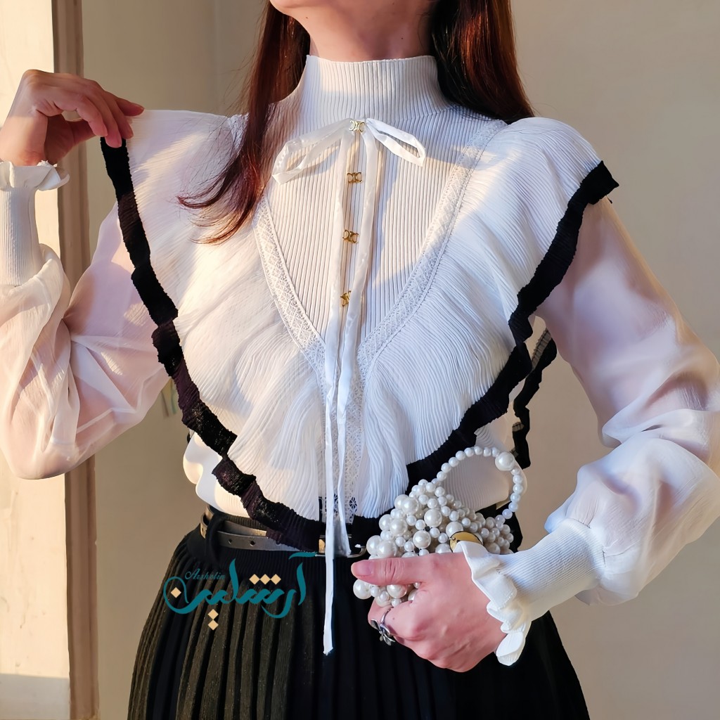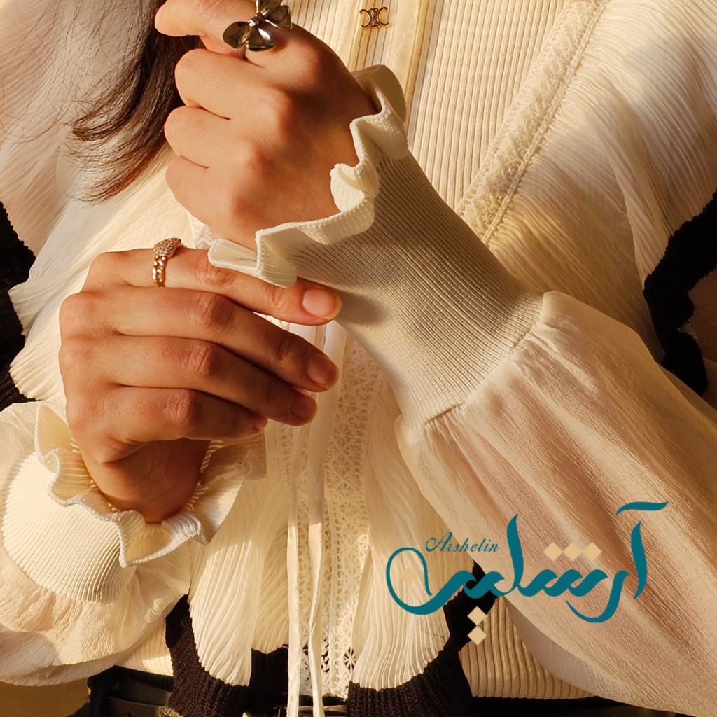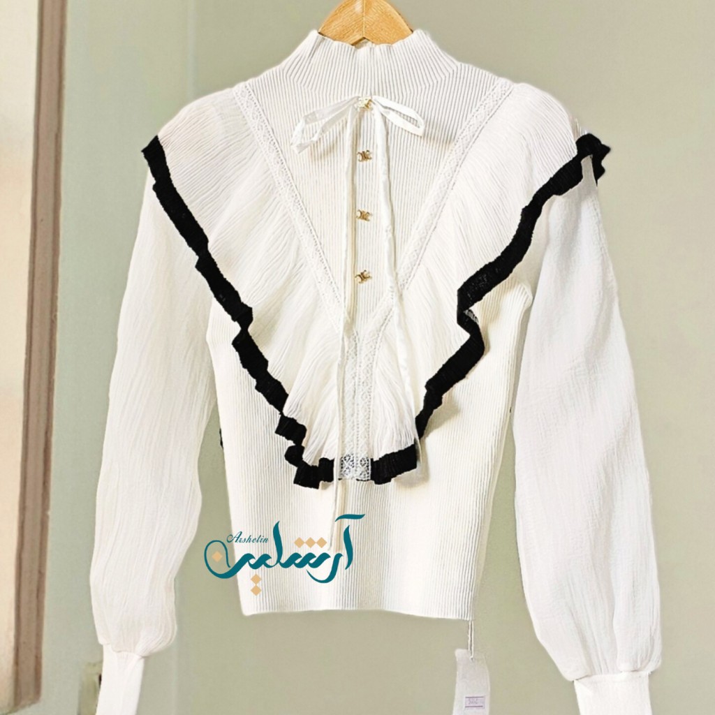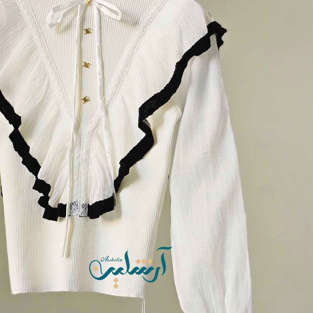 ✨️شومیز بافت مجلسی وارداتی ،آستین حریر، آستین شومیز دو لایه تور کار شده، سرآستین بافت، جلو و پشت شومیز چین خورده✨️