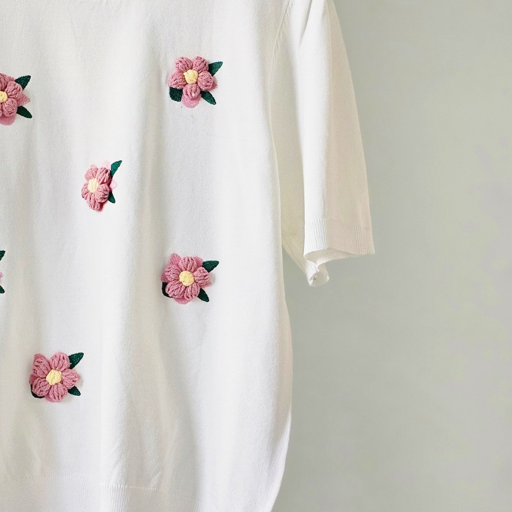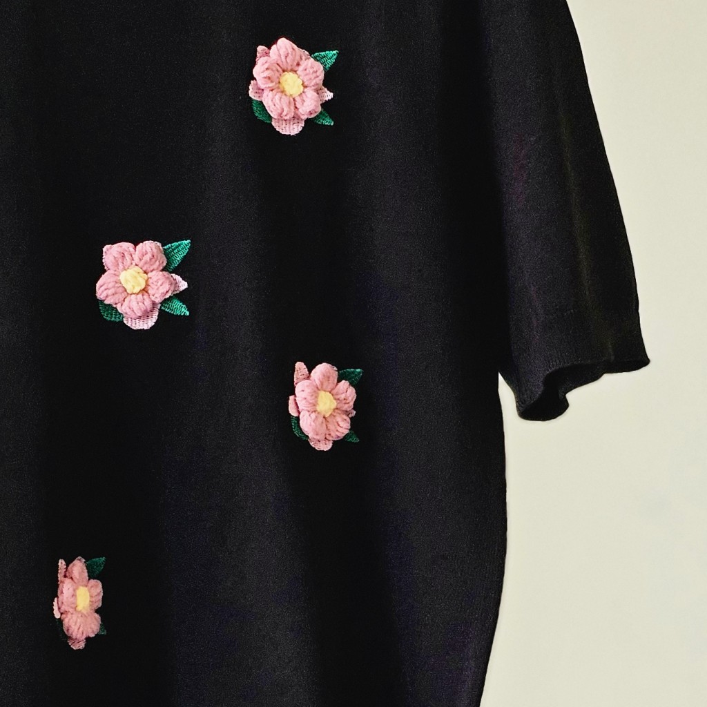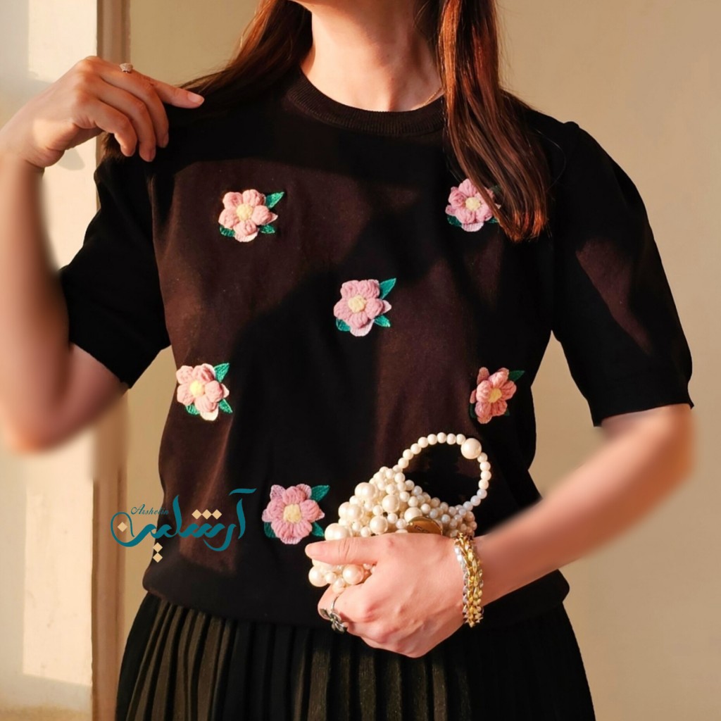 ✨️ بلوز بافت یقه گرد وارداتی،لطیف با ضخامت متوسط,با گل های برجسته✨️