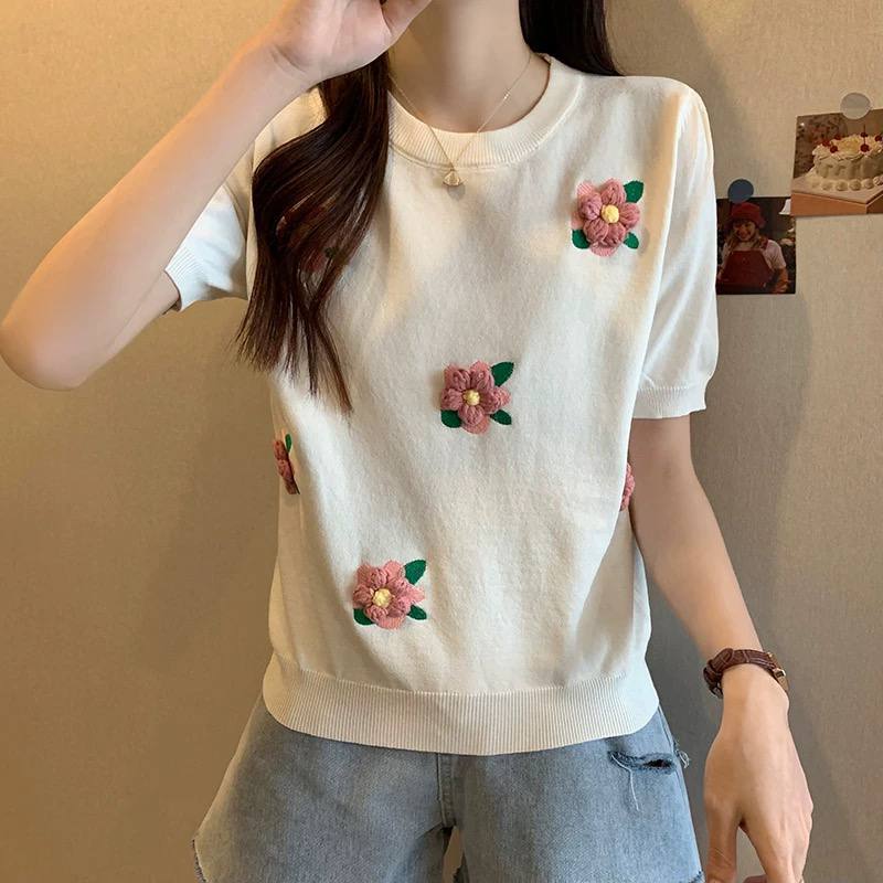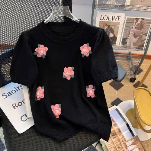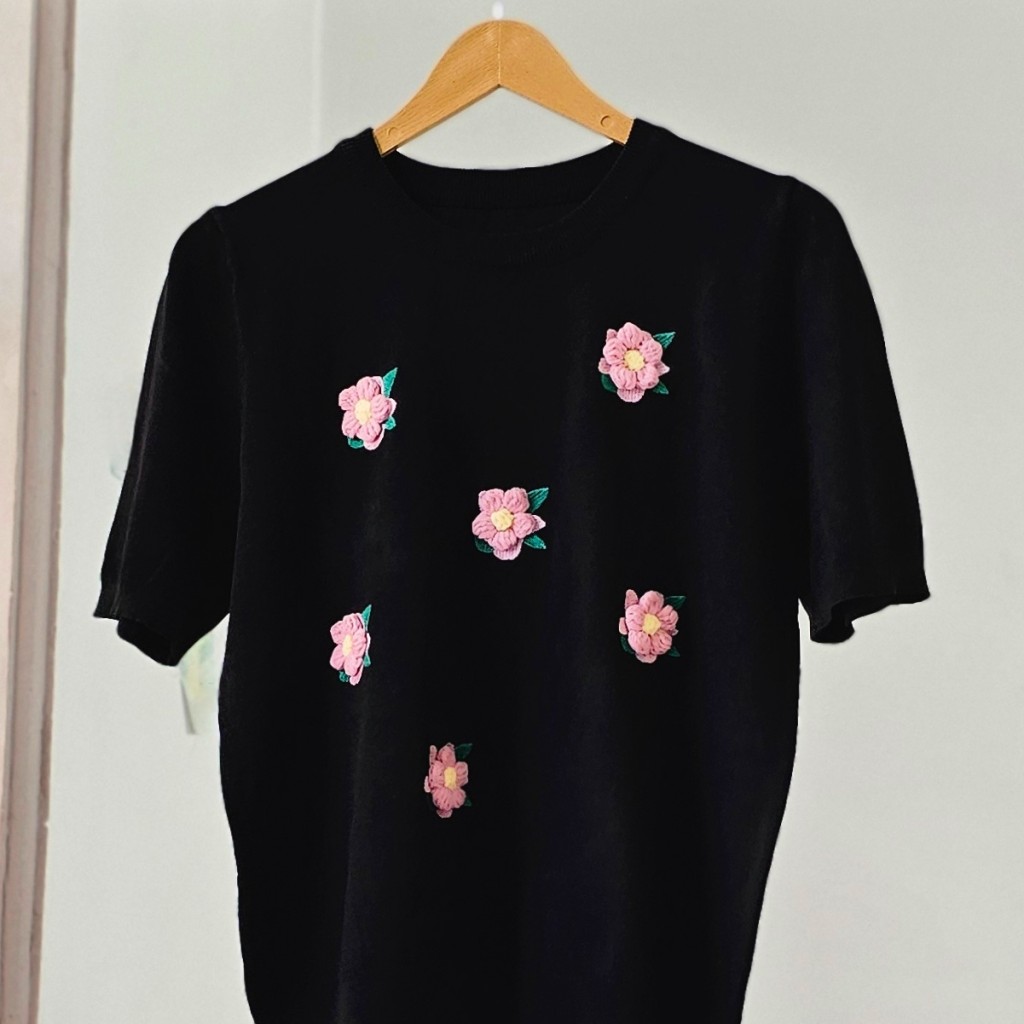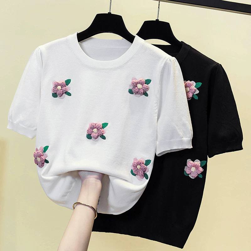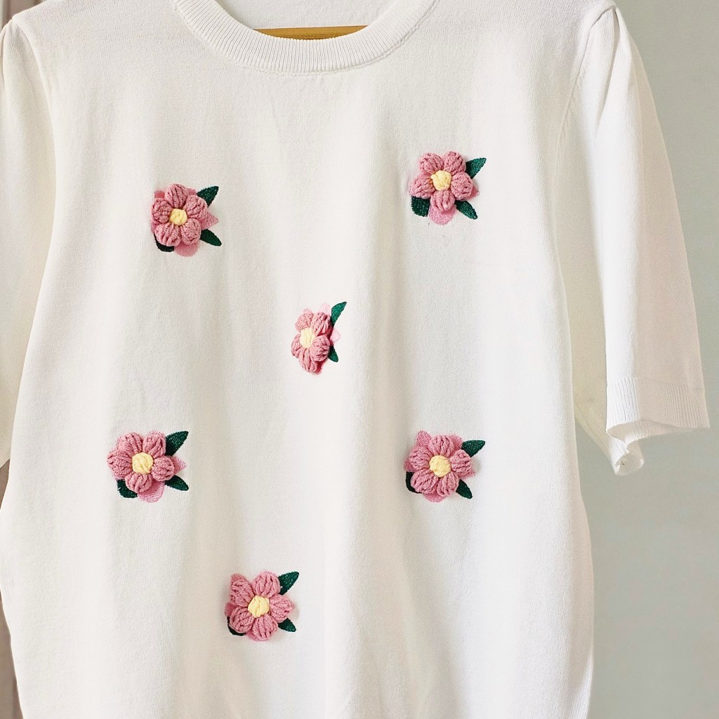 ✨️ بلوز بافت یقه گرد وارداتی،لطیف با ضخامت متوسط,با گل های برجسته✨️