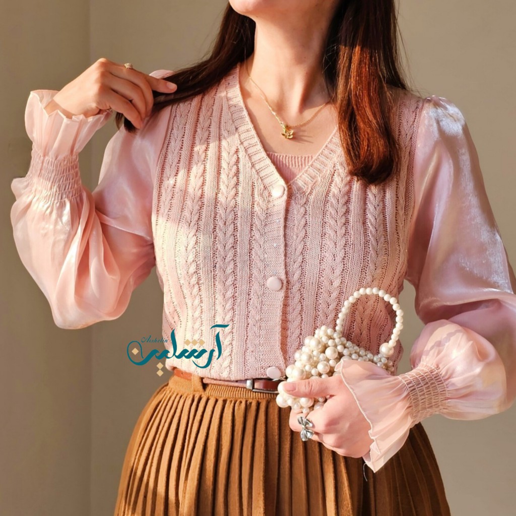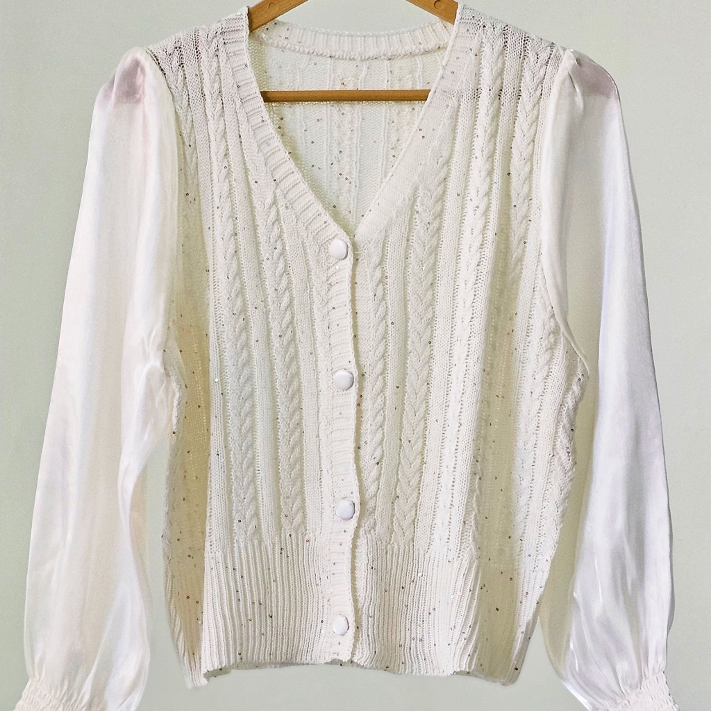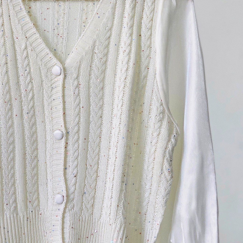 ✨️کاردیگن قلاب بافی وارداتی،ظریف و لطیف،داخل بافت پولک های ریزی کار شده، دکمه ها باز میشن، استینش حریر ساتن✨️