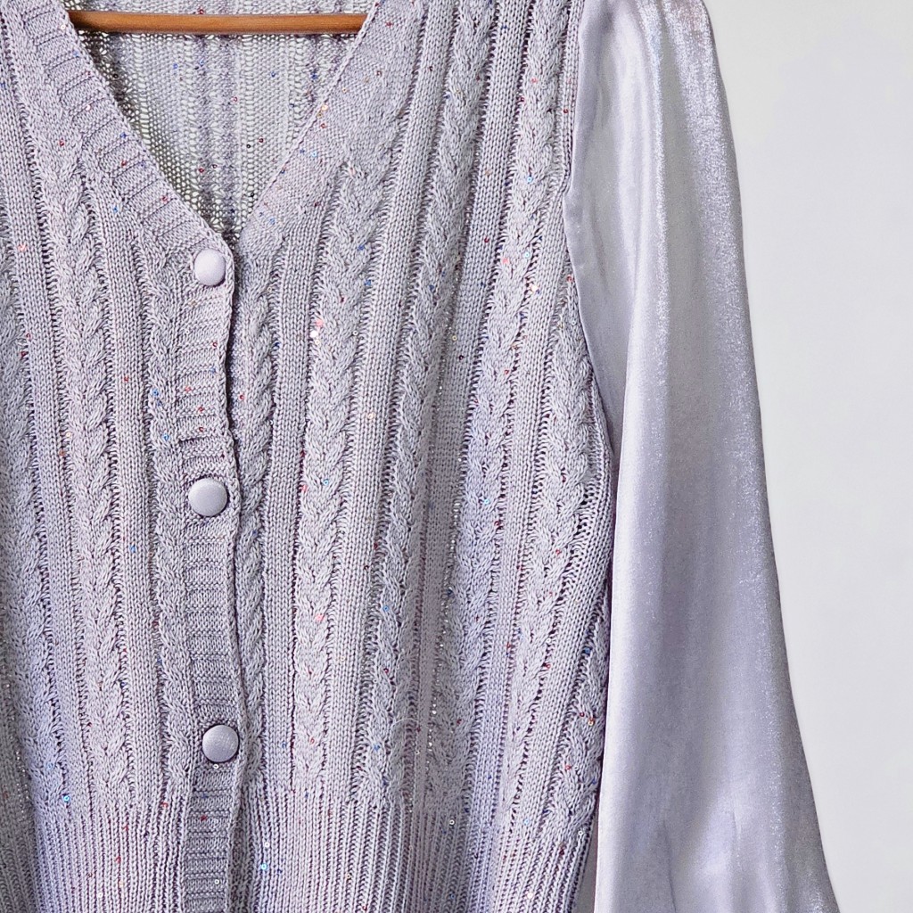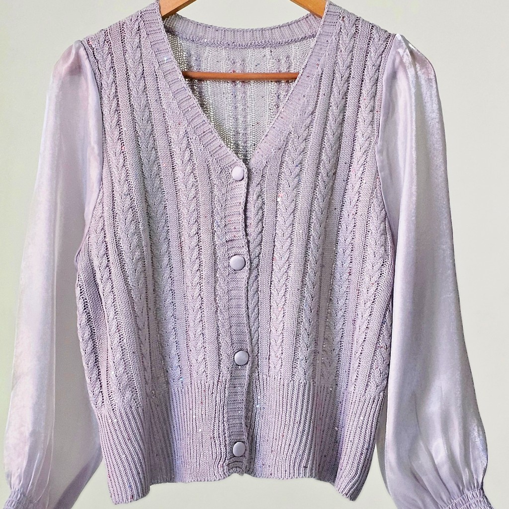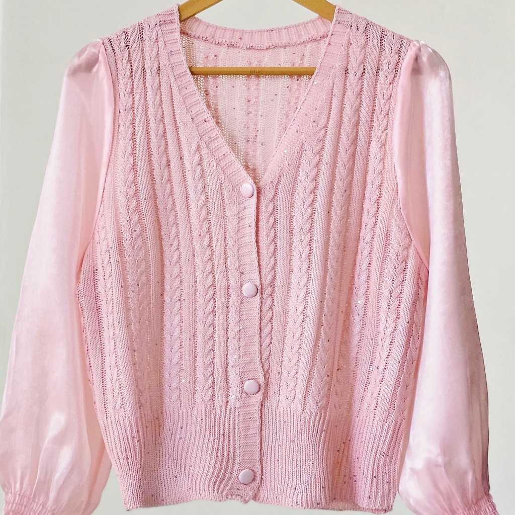 ✨️کاردیگن قلاب بافی وارداتی،ظریف و لطیف،داخل بافت پولک های ریزی کار شده، دکمه ها باز میشن، استینش حریر ساتن✨️
