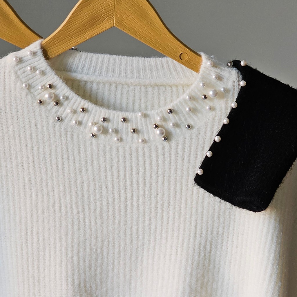 ✨️ پلیور بافت وارداتی،گرم بالا ولطیف،مروایدها پانچ شده هستن ریزش ندارن✨️