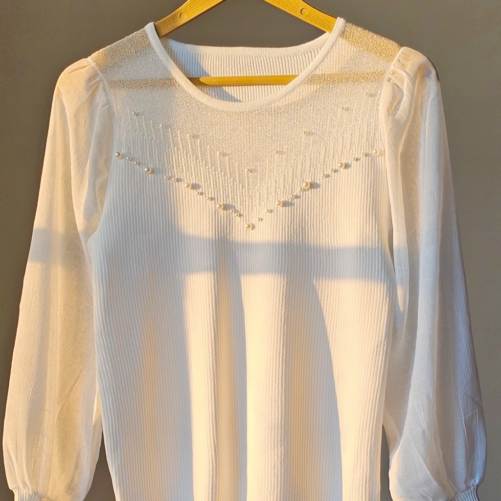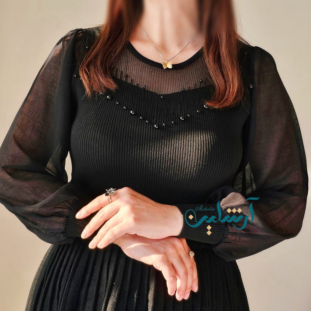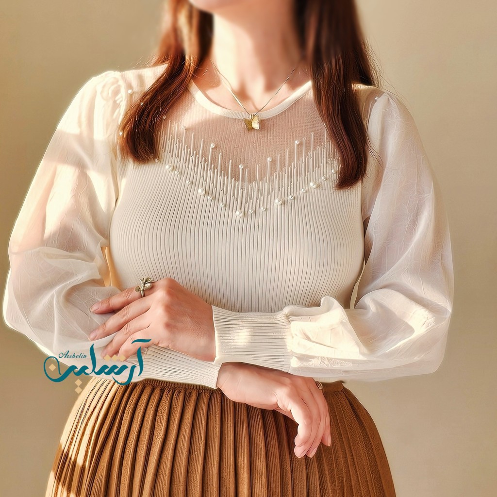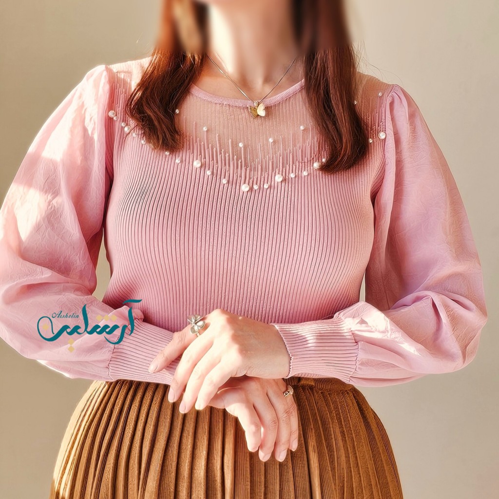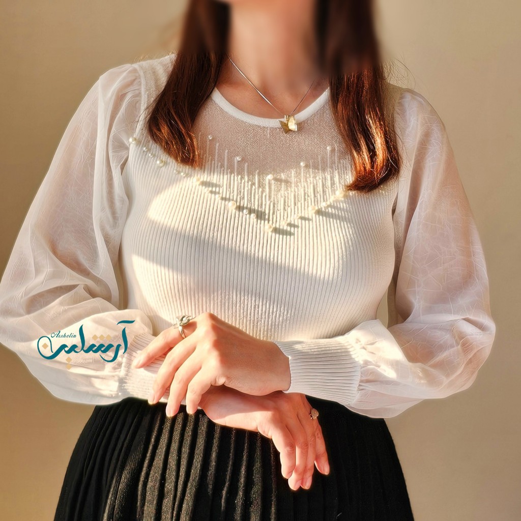 ✨️شومیز بافت ظریف و لطیف وارداتی،با آستین حریر، یقه شومیز تور کارشده به همراه مروارید دوزی که همه پانچ شده هستن و ریزش ندارن✨️