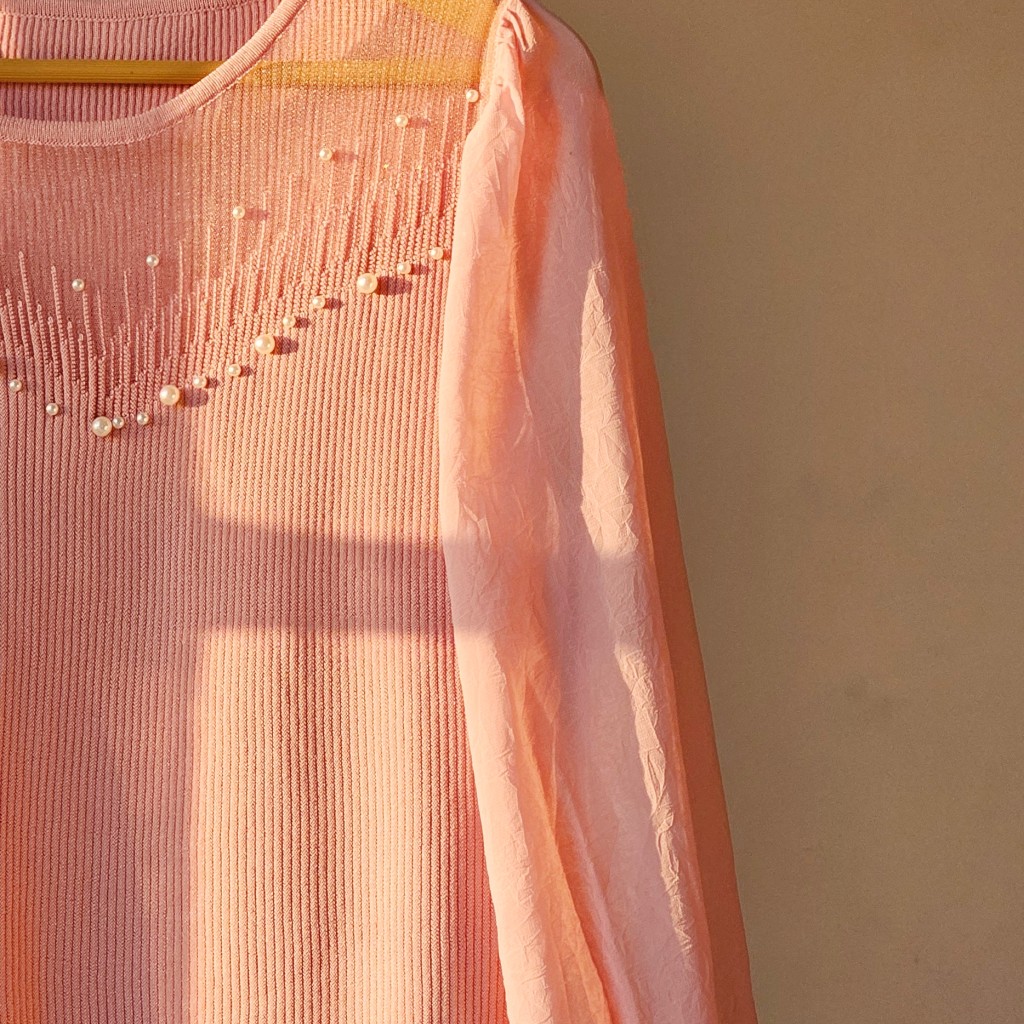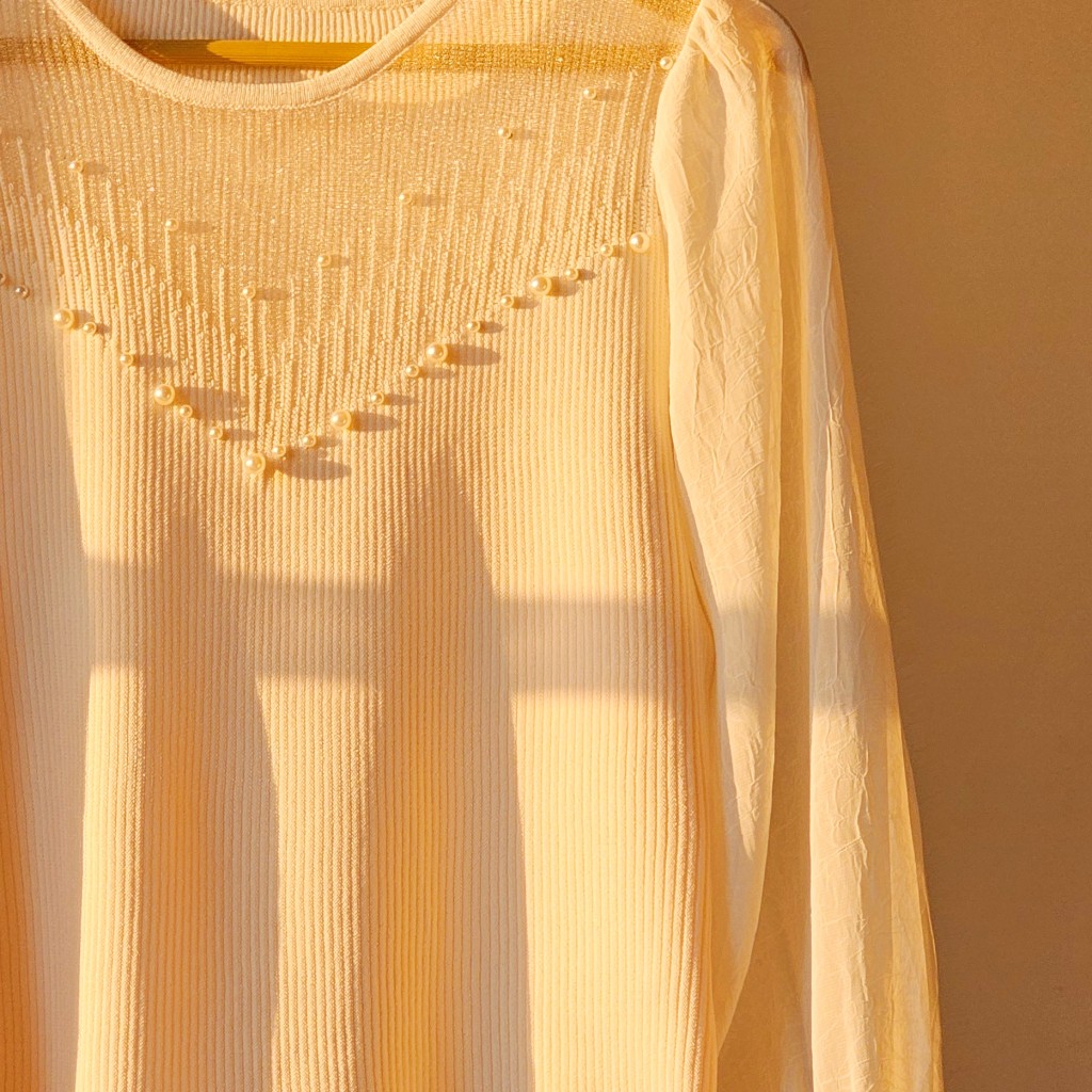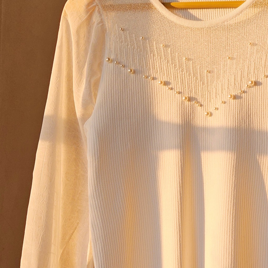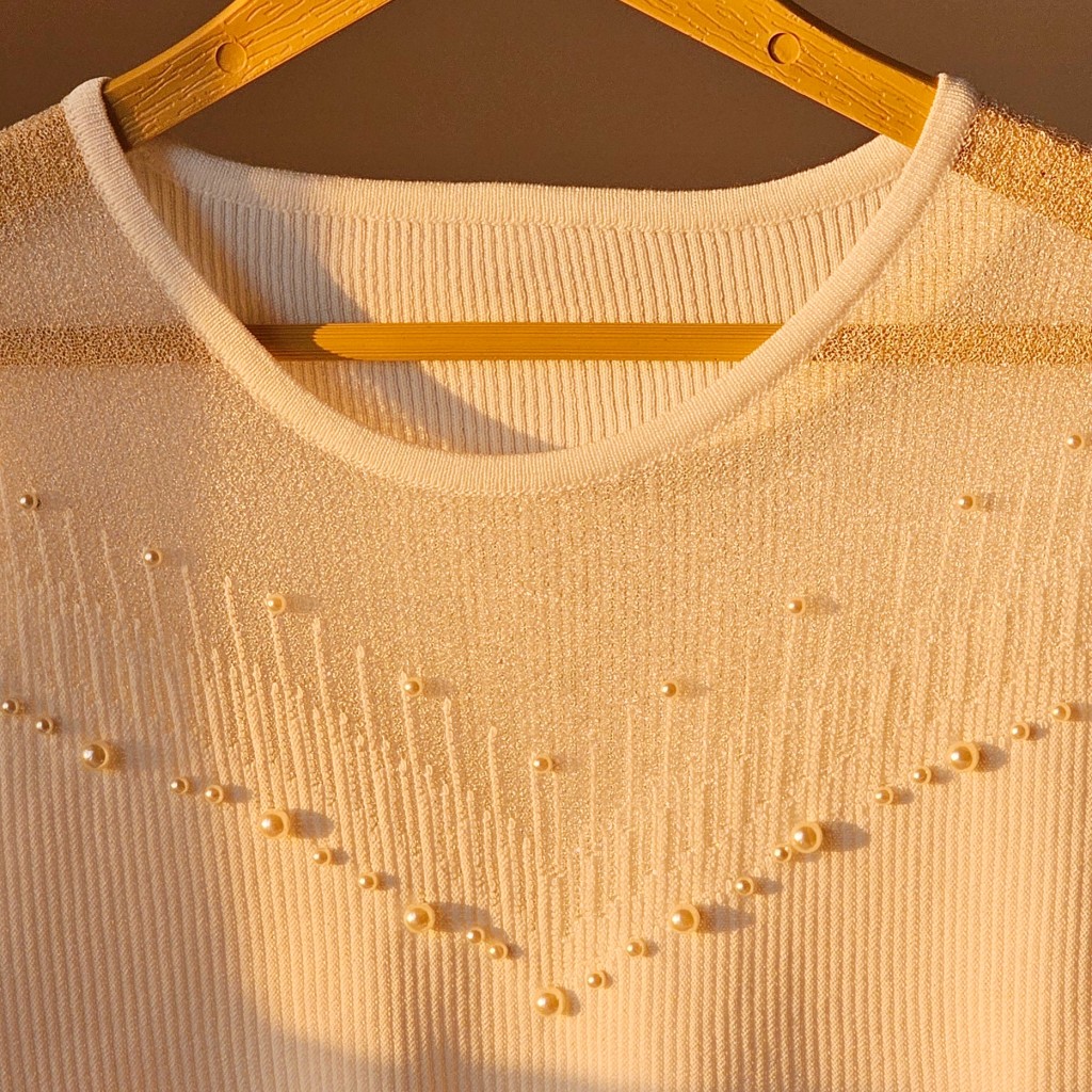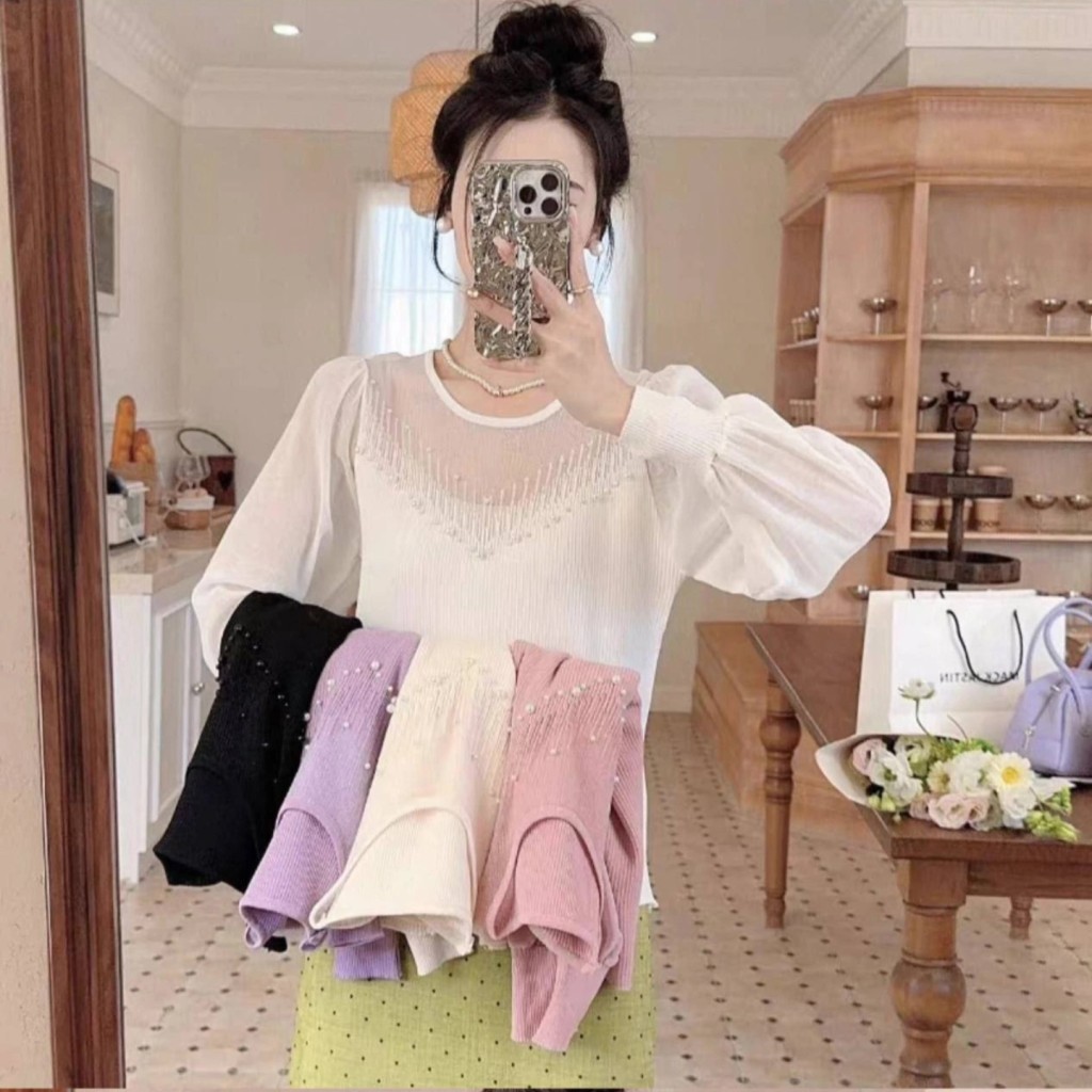 ✨️شومیز بافت ظریف و لطیف وارداتی،با آستین حریر، یقه شومیز تور کارشده به همراه مروارید دوزی که همه پانچ شده هستن و ریزش ندارن✨️