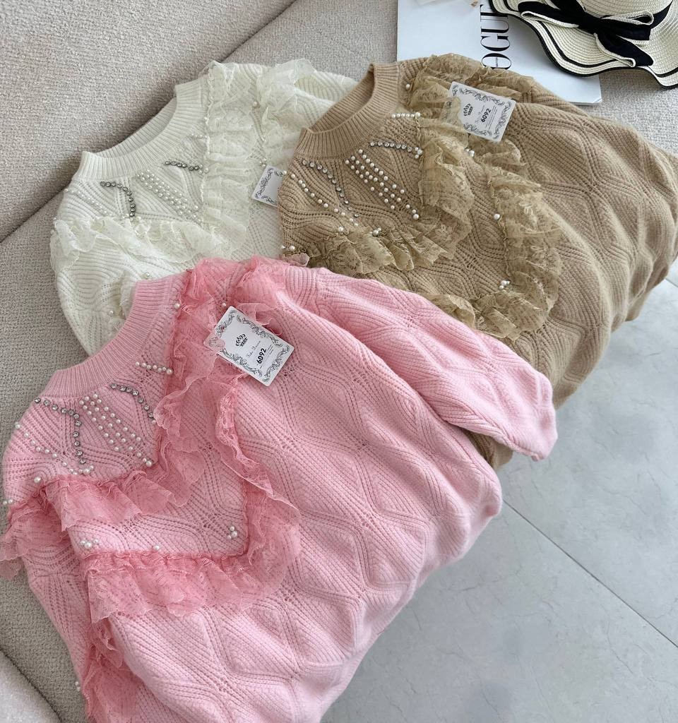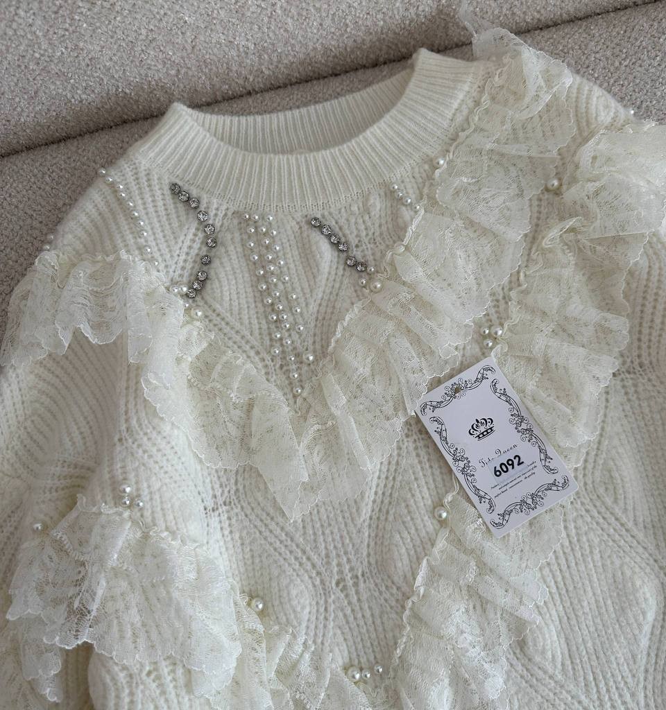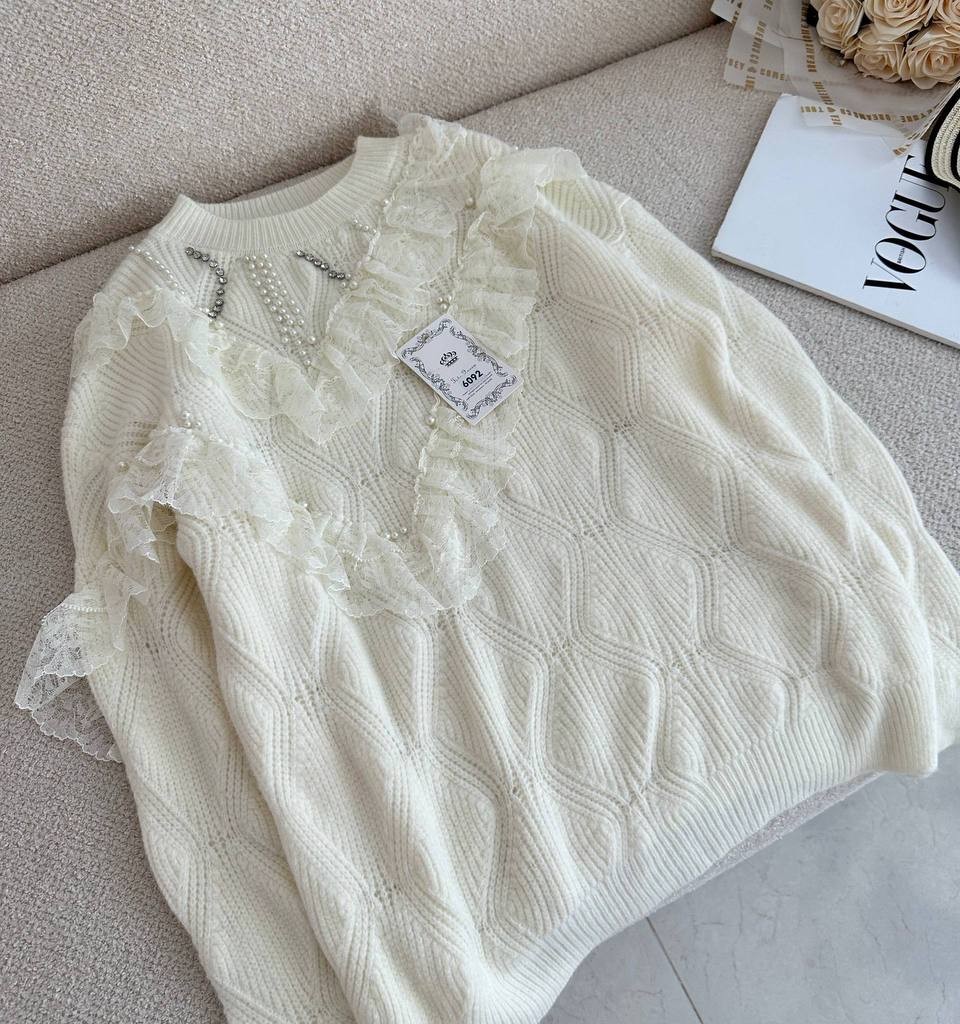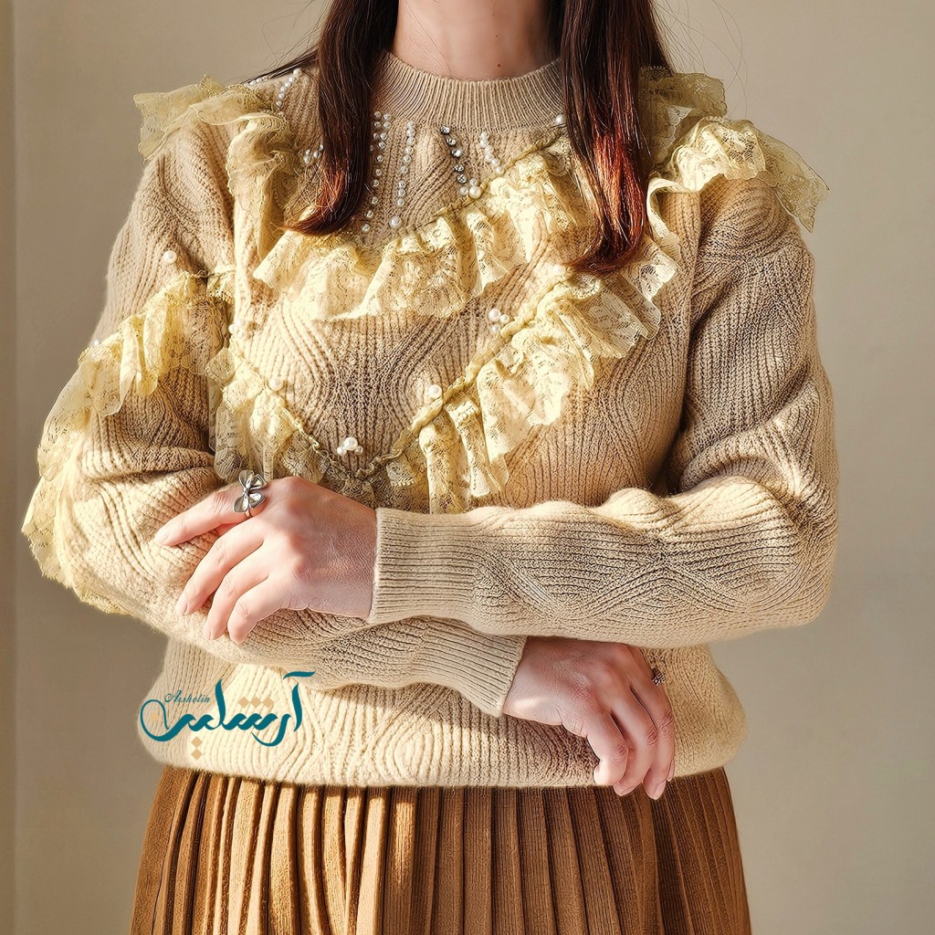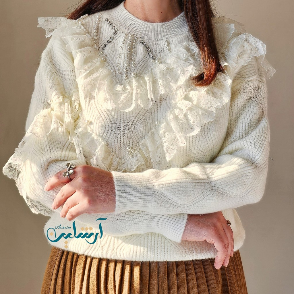 ✨️ پلیور بافت ،گرم بالا و بسیار لطیف وارداتی، یقه گیپور کارشده به همراه مروارید دوزی ونگین که همه پانچ شده هستن و ریزش ندارن✨️