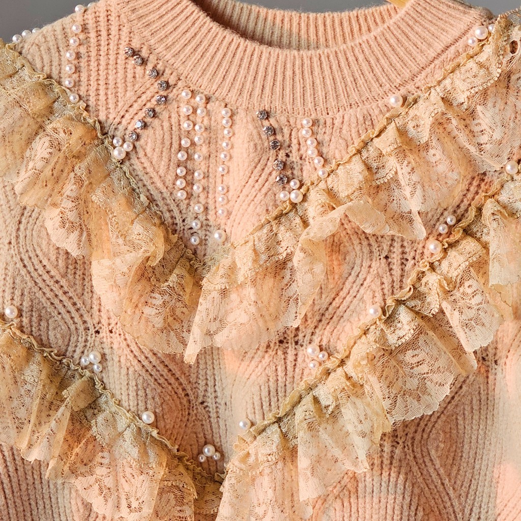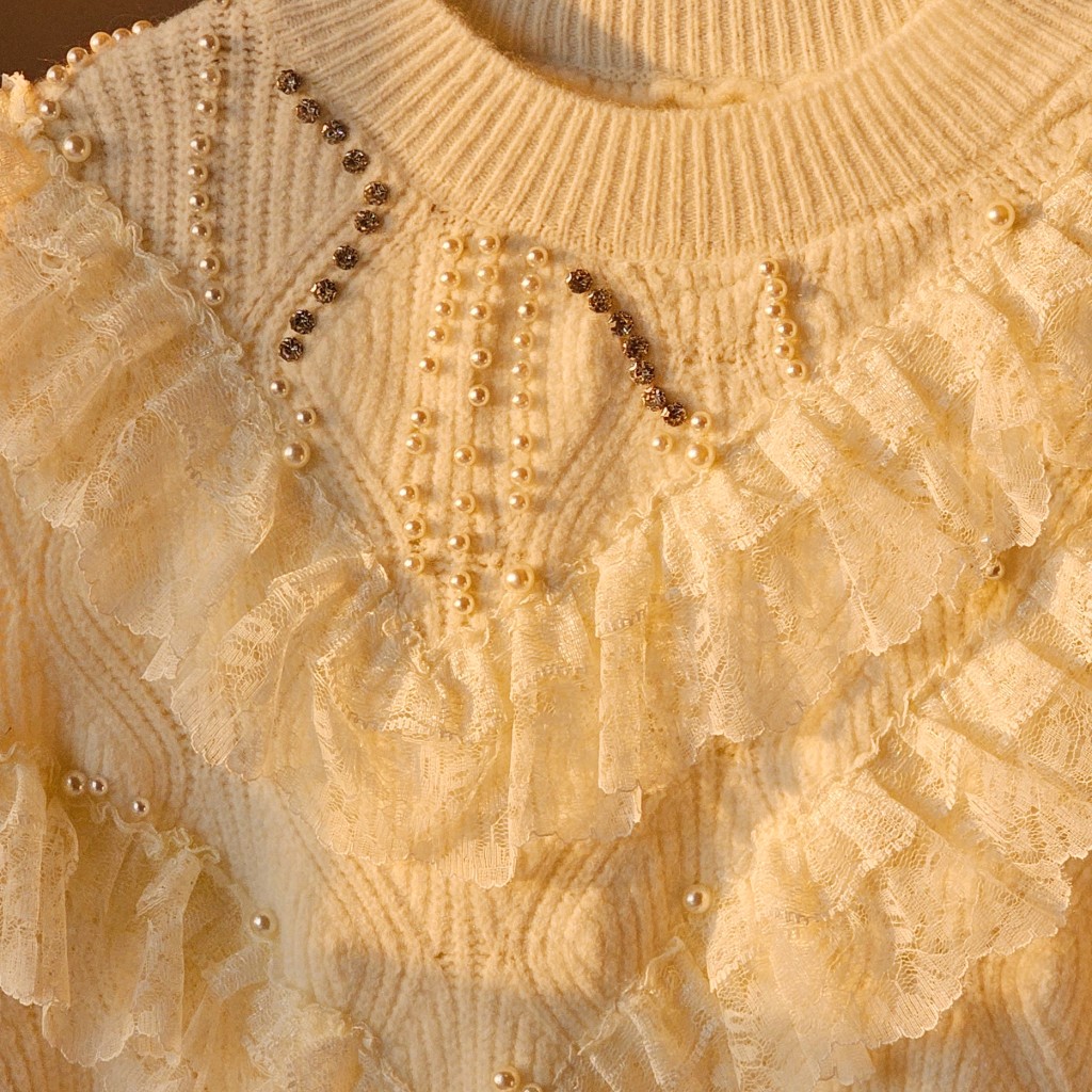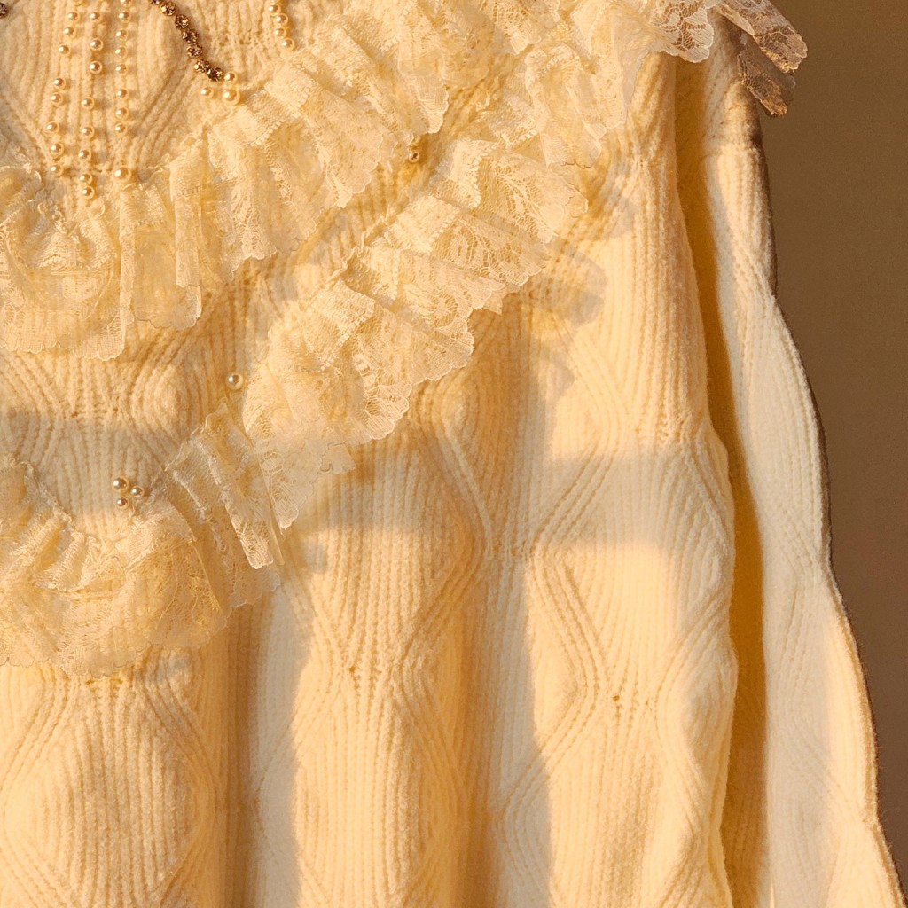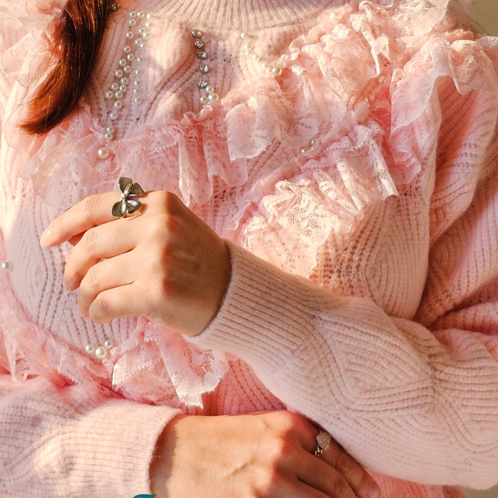 ✨️ پلیور بافت ،گرم بالا و بسیار لطیف وارداتی، یقه گیپور کارشده به همراه مروارید دوزی ونگین که همه پانچ شده هستن و ریزش ندارن✨️
