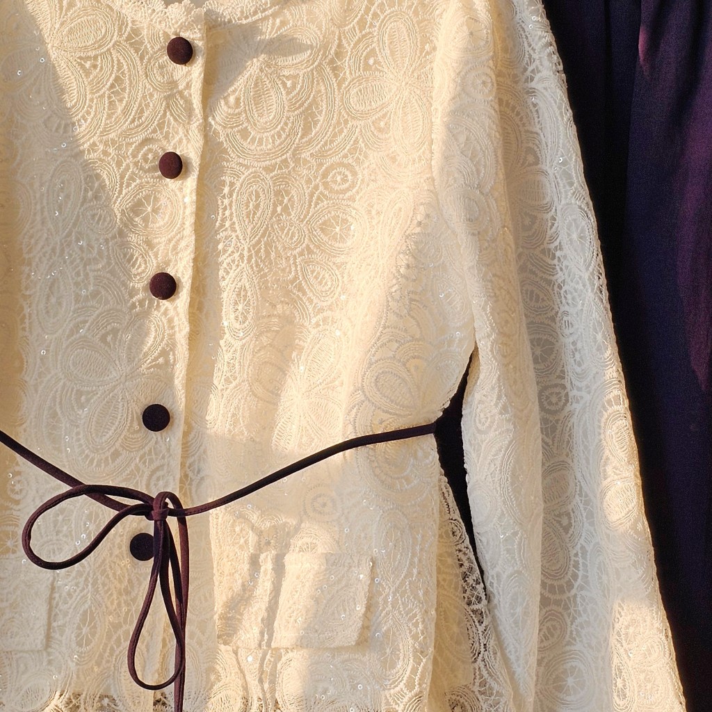 ✨️ کت و دامن دانتل مجلسی وارداتی، بسیار شیک،تمام دانتل(بافت پارچه پولک دوزی شده هست) ،رنگ دکمه های کت ست شده با رنگ دامن هست ،آستر دار با آستر نخی(فقط آستین جنس آسترش کرپ هست)، دکمه ها کاربردی، جیب نما، دامن کمر کش وآستردار، جنس دامن لینن وارداتی بدن نما نیست، دامن کلوش