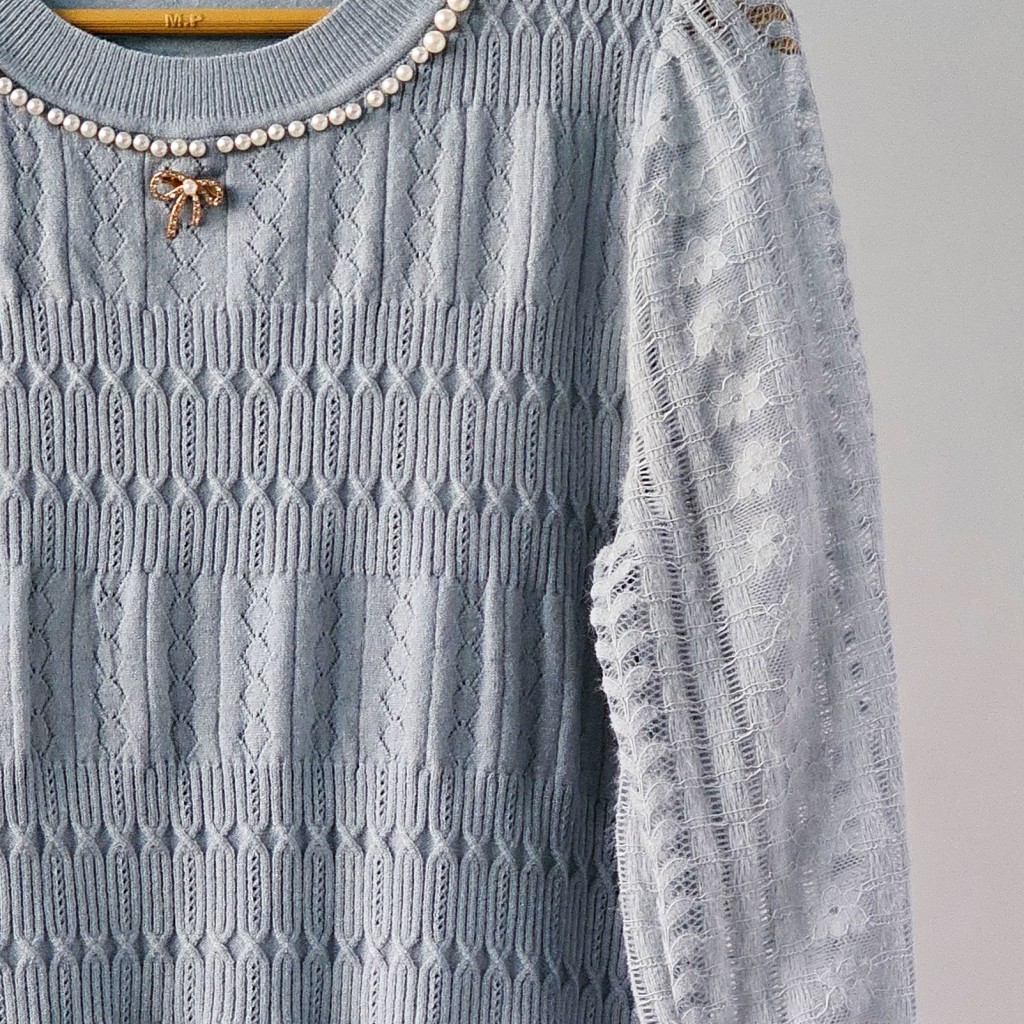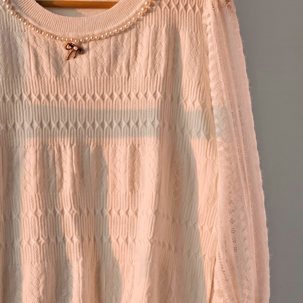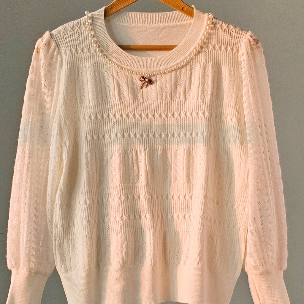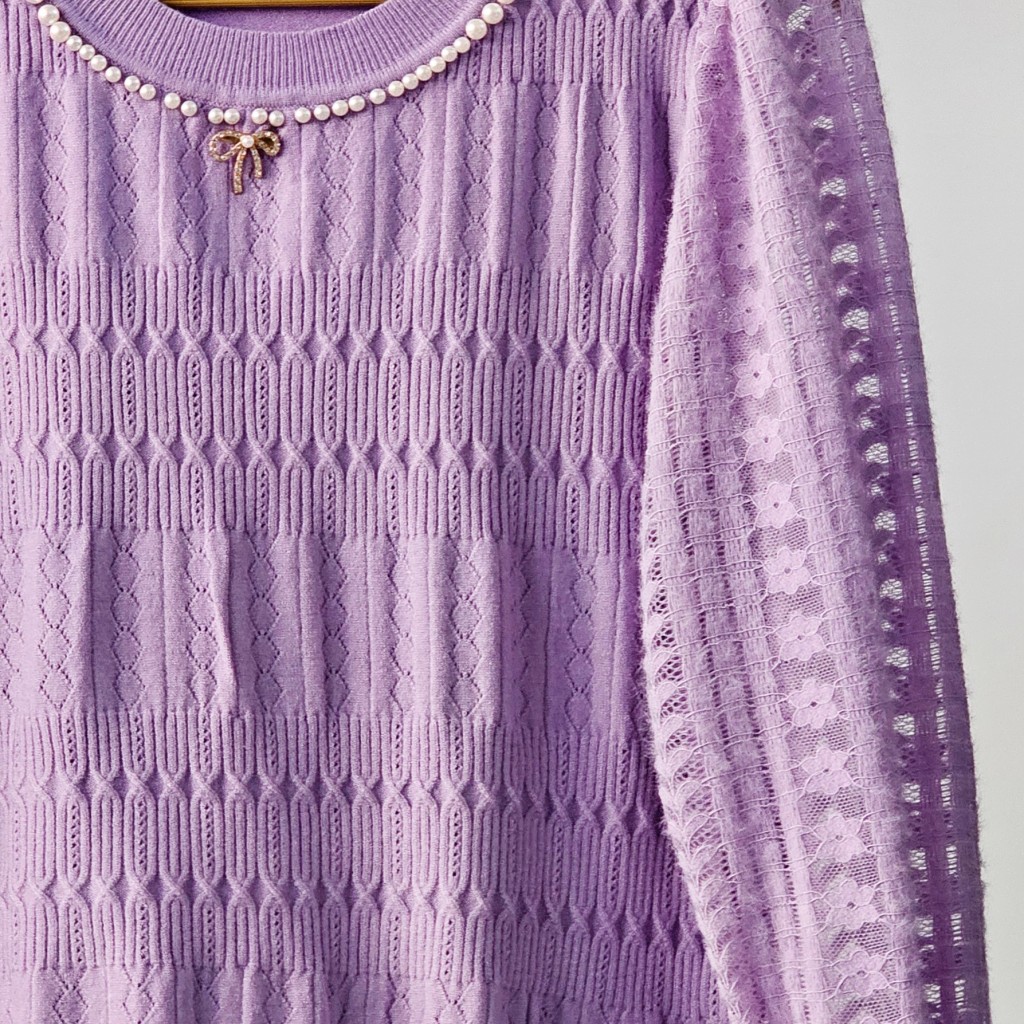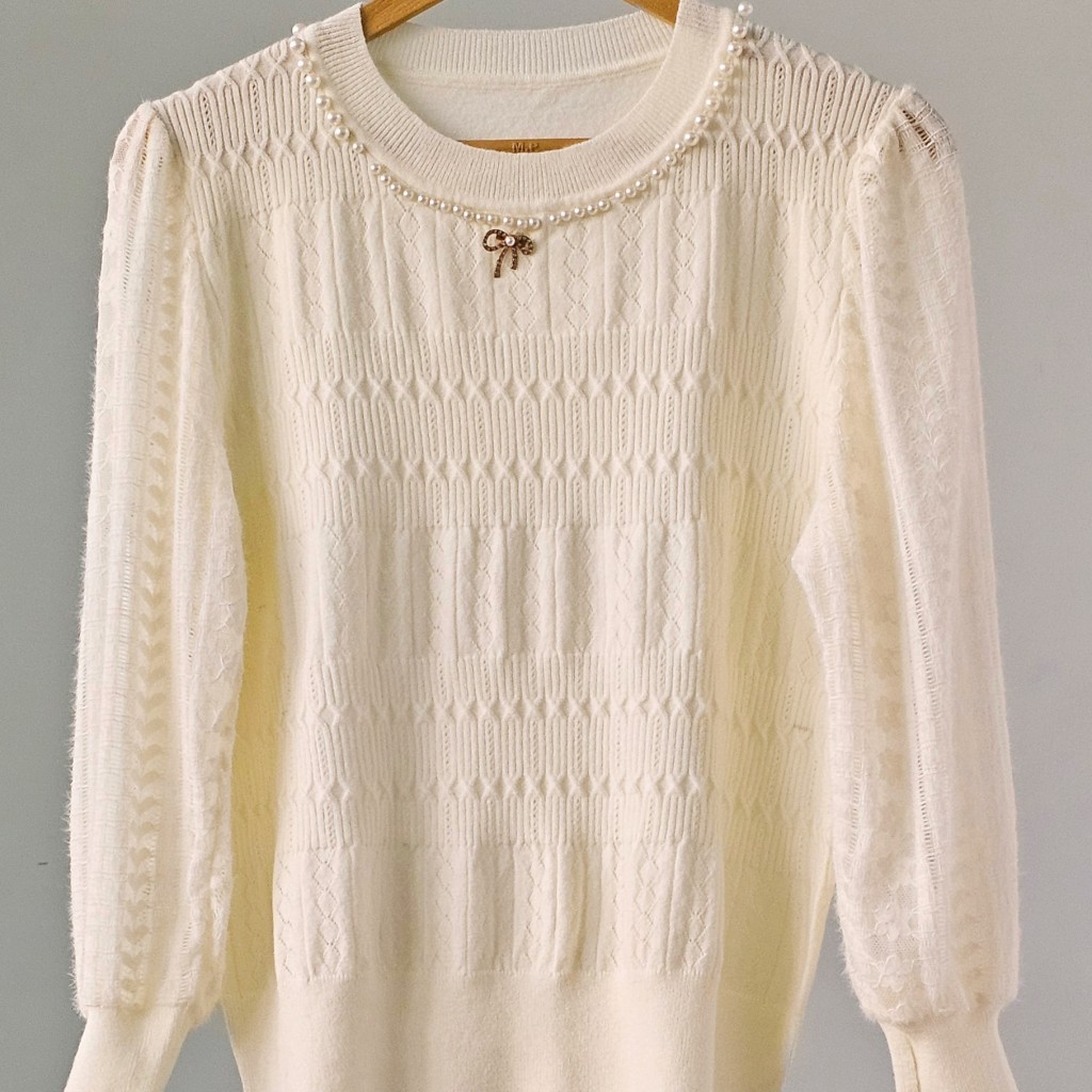 ✨️ شومیز بافت مجلسی بسیار شیک وارداتی، مرواریدهای روش پانچ شده هستن و ریزش ندارن، بافت لطیف با آستین گیپور موهر، سنجاق سینه پاپیونی داره(بعضی هاشون چن تا دونه نگینش افتاده)✨️