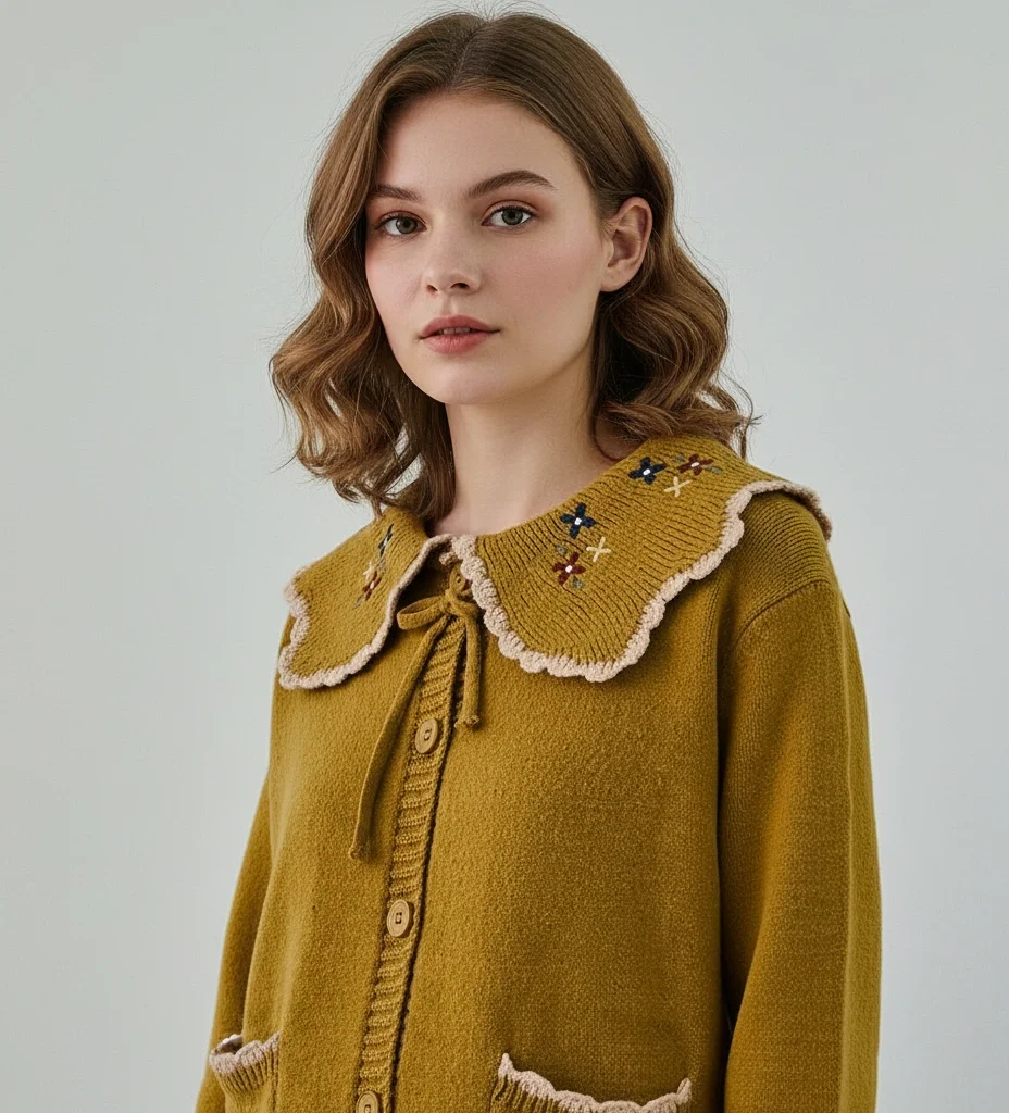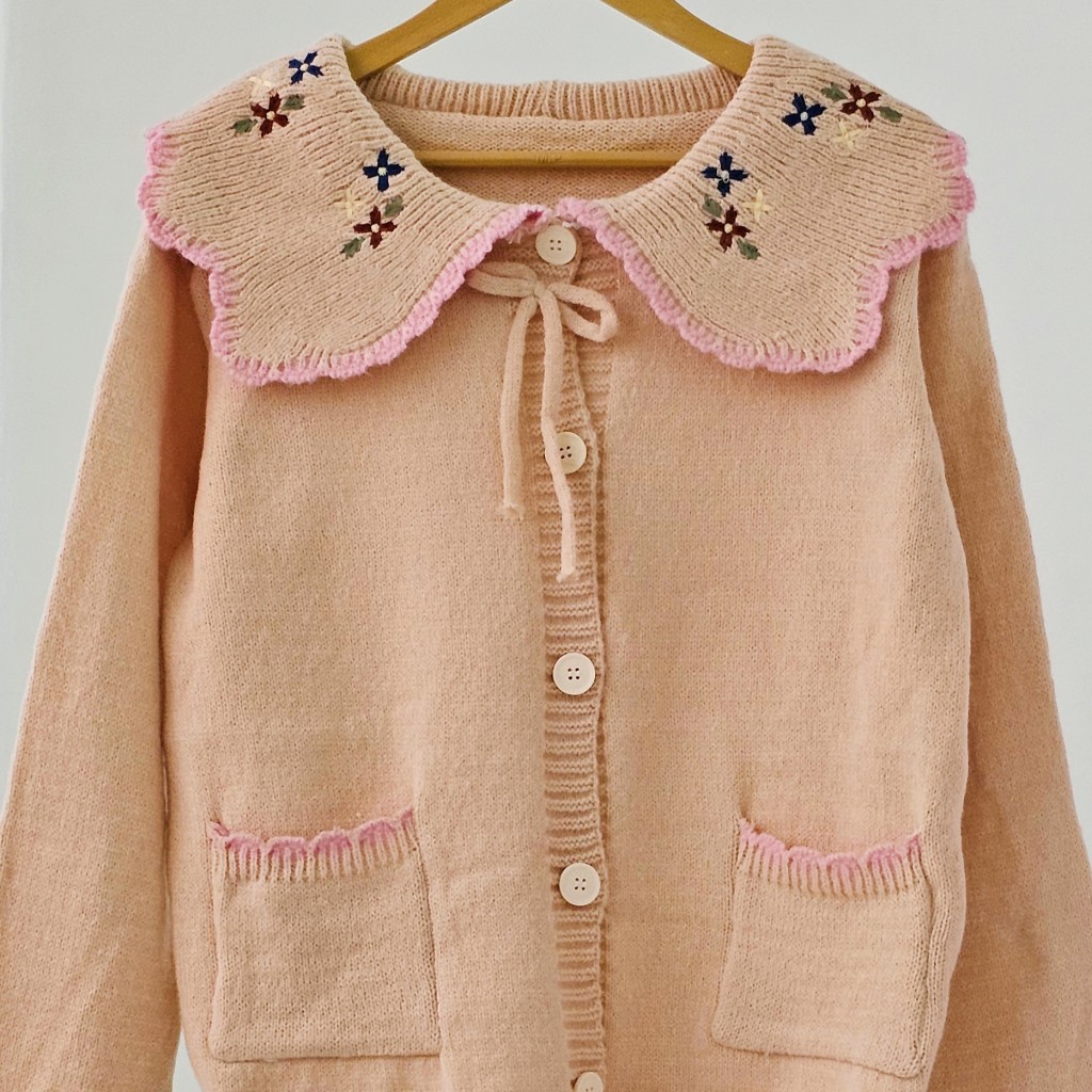 کاردیگن بافت وارداتی با یقه ی گلدوزی شده