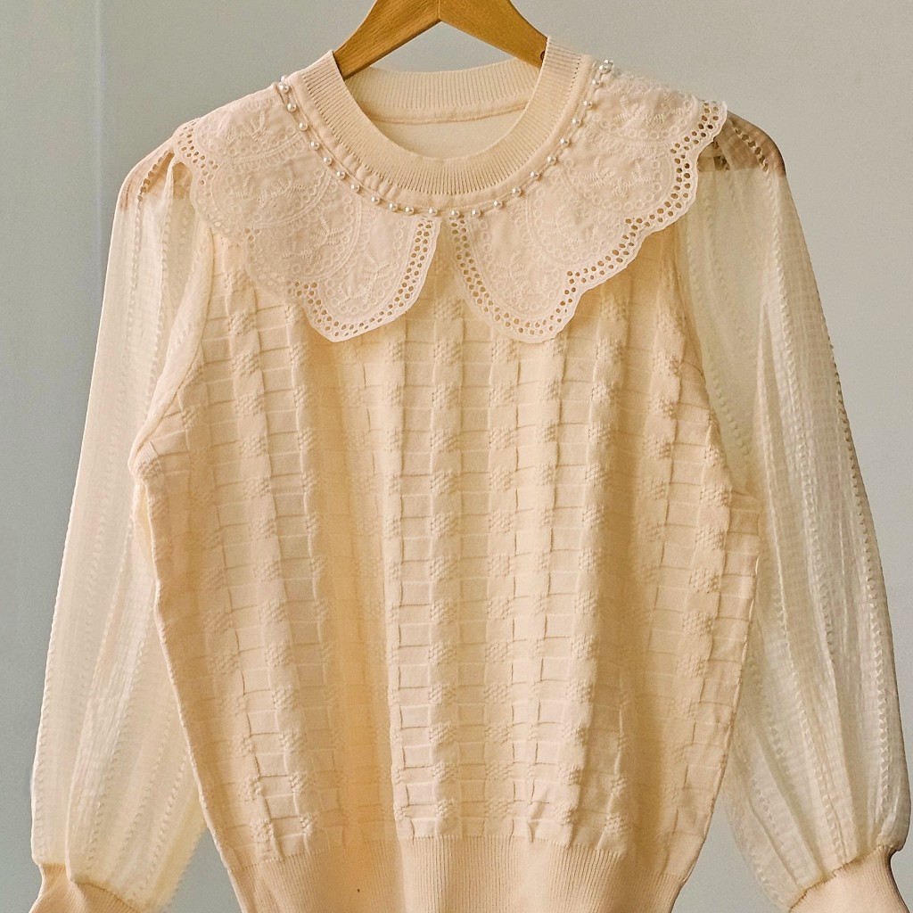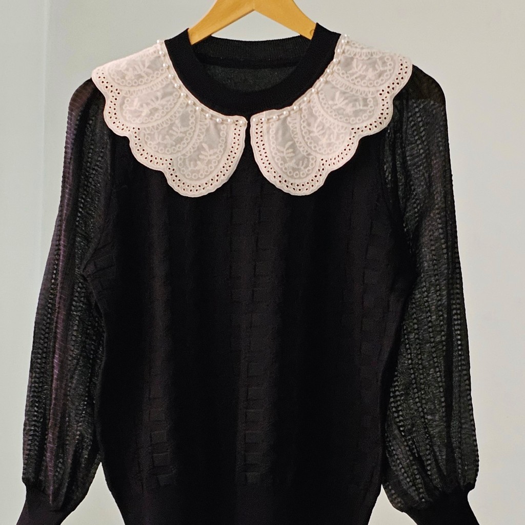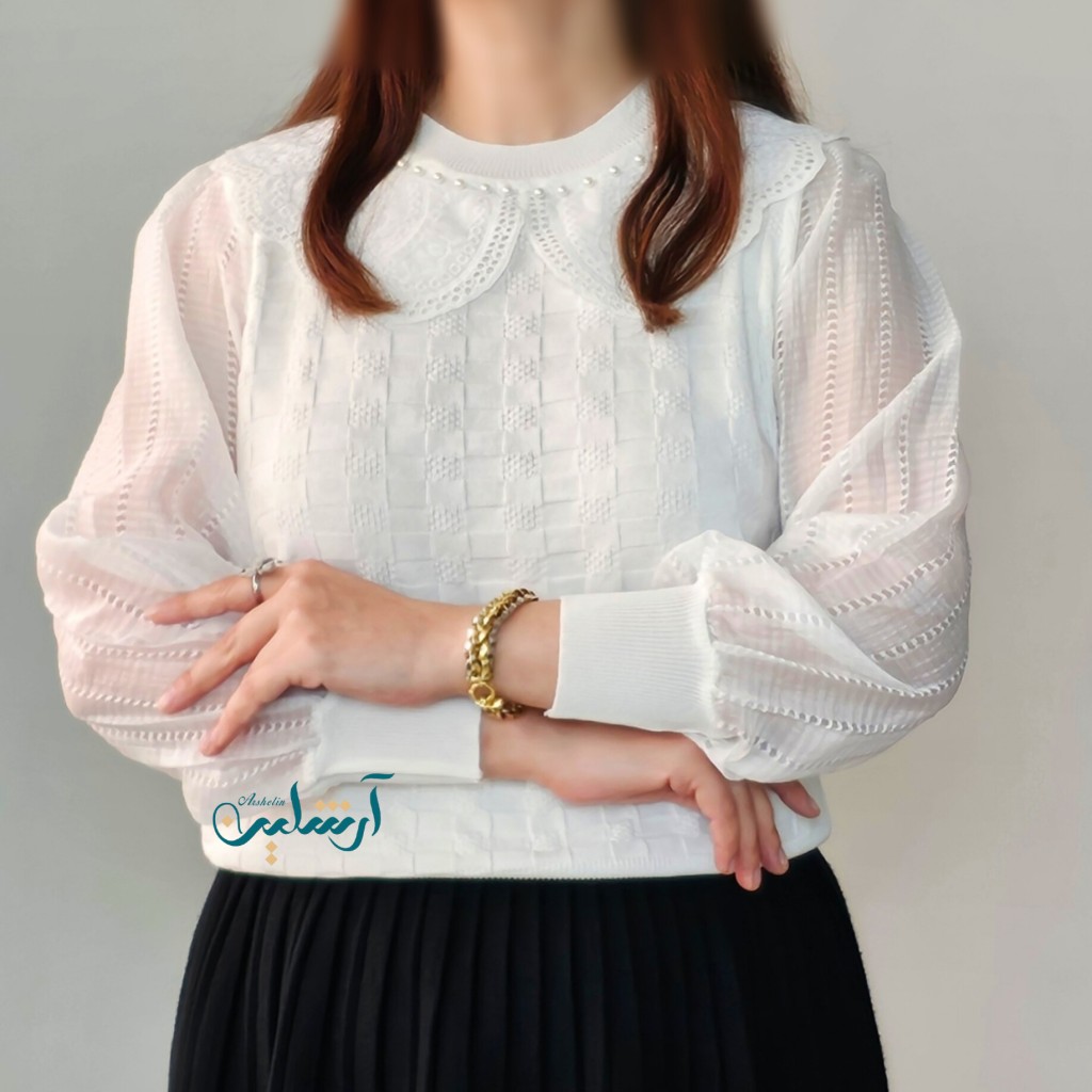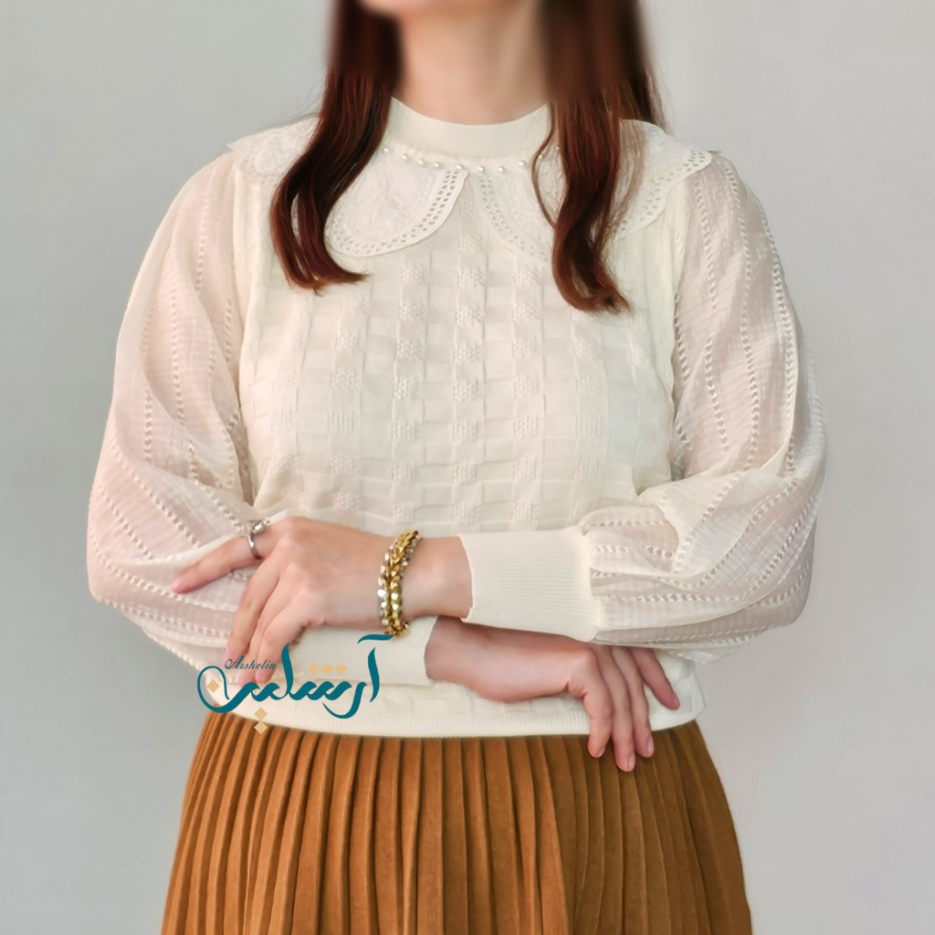 ✨️ شومیز بافت مجلسی وارداتی و بسیار شیک، مرواریدهای روش پانچ شده هستن و ریزش ندارن، بافت کریستال با آستین حریر، یقه خامه دوزی شده✨️
