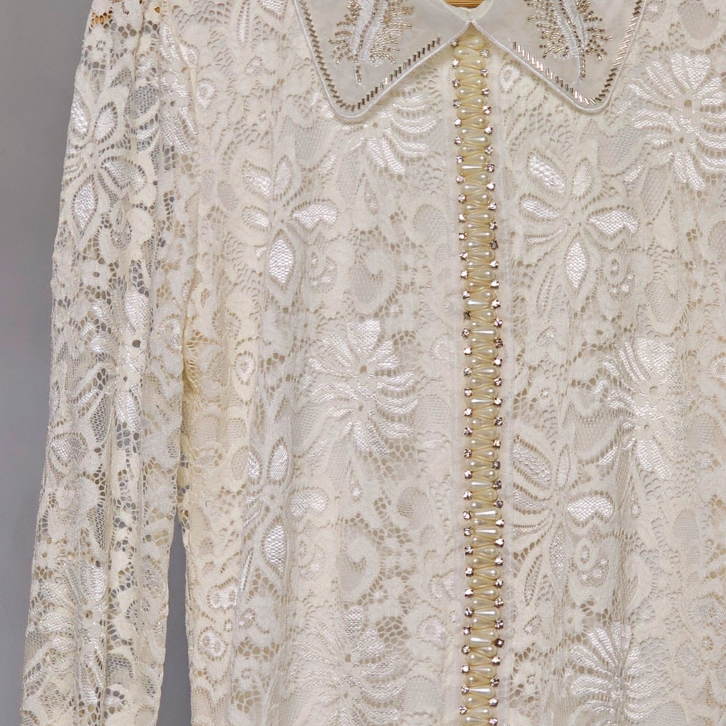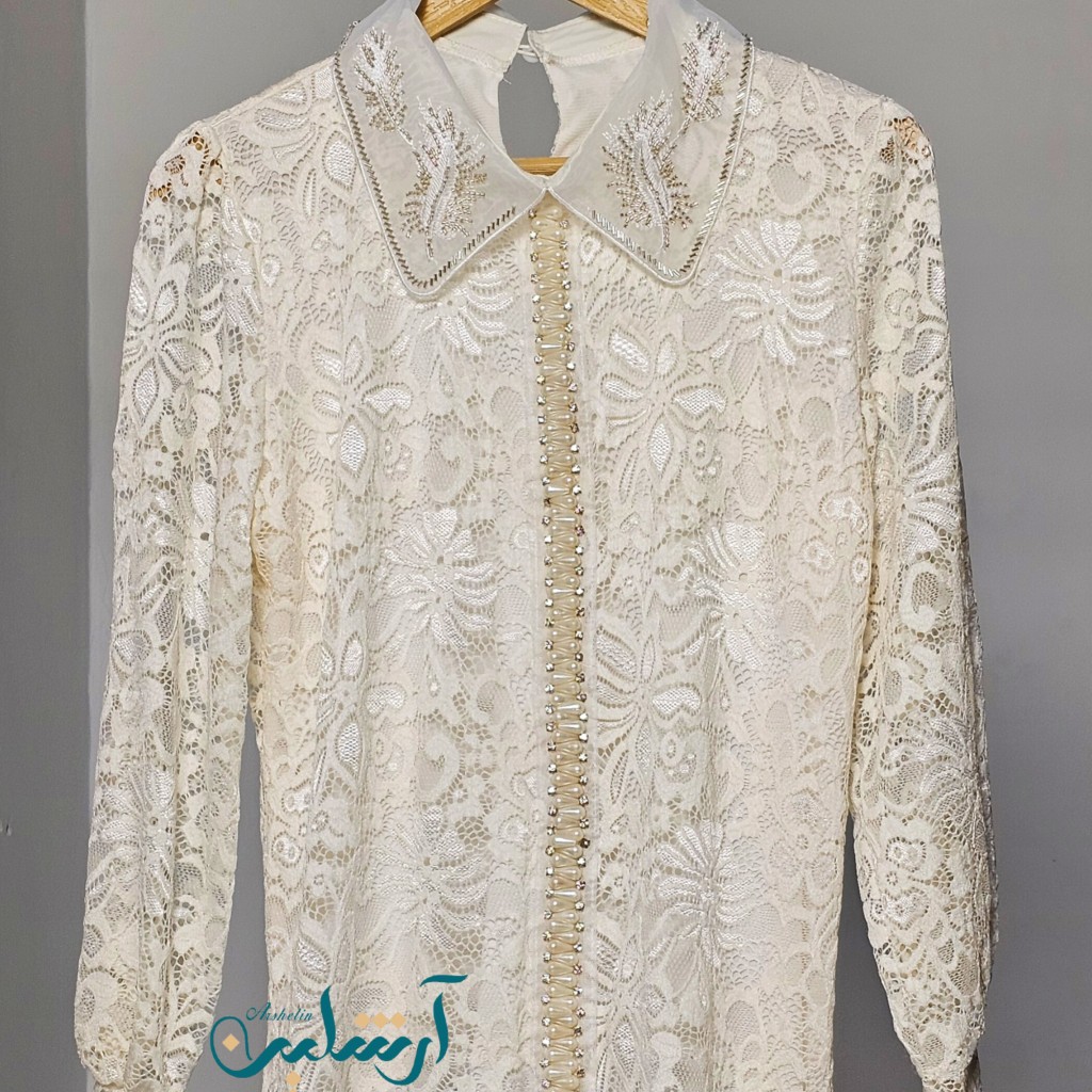 ✨️ شومیز وارداتی گیپور درجه یک✨️,پارچه گیپور، آستر دار، جلوی شومیز مروارید و نگین دوزی شده،یقه شومیز منجوق دوزی شده و پشت یقه یه دونه دکمه میخوره✨️