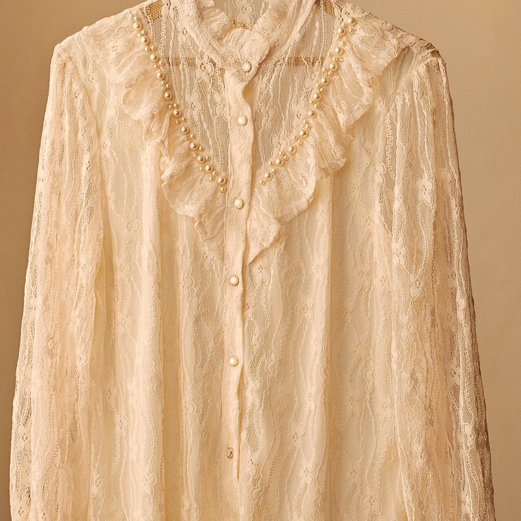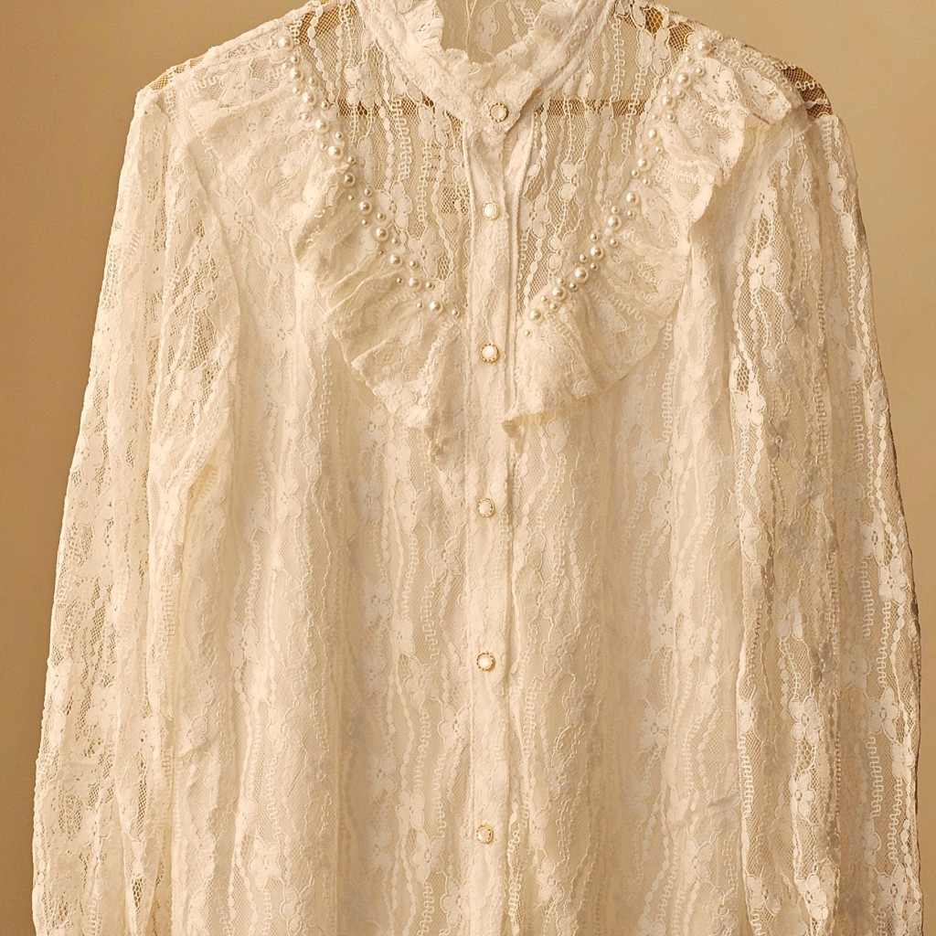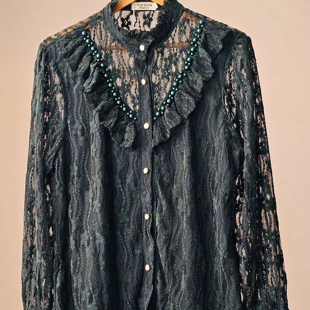 ✨️ شومیز وارداتی گیپور، جلوی شومیزآستر دار پشت شومیز بدون آستر، یقه شومیز خامه دوزی کارشده، دکمه ها کاربردی هستن،پارچه کشسانی داره، مرواریدهای شومیز پانچ شده وریزش ندارن✨️