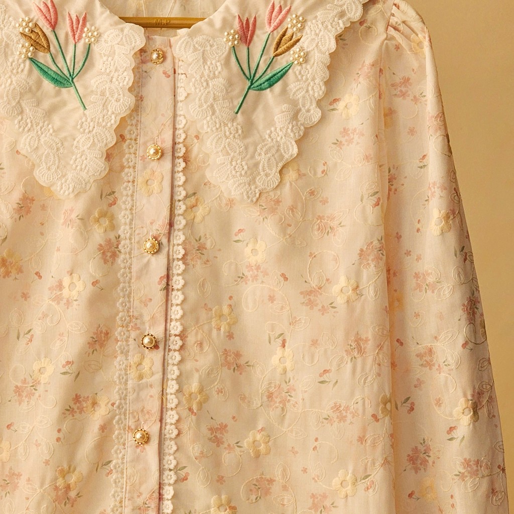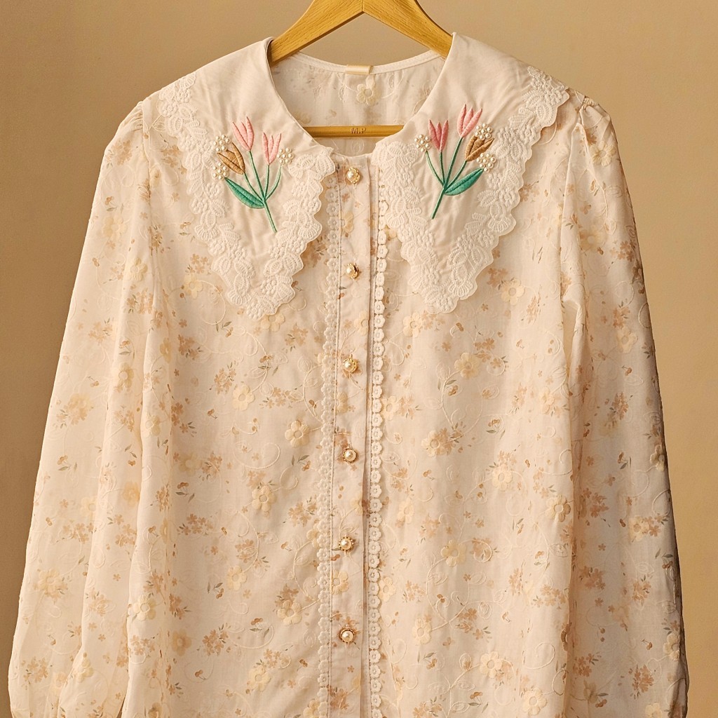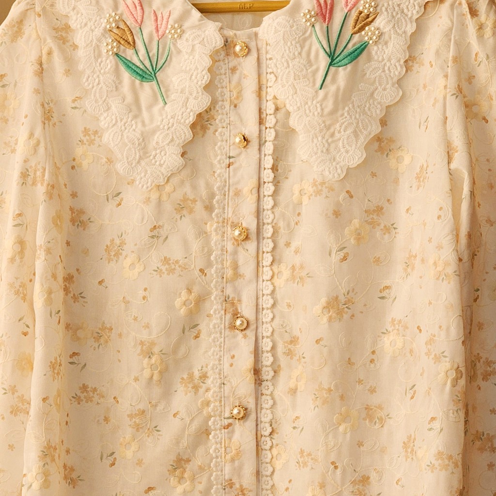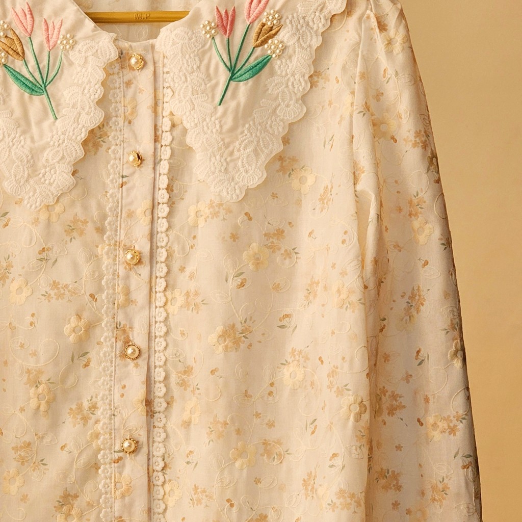 ✨️ شومیز وارداتی نخی خامه دوزی✨️✨️,پارچه نخی خامه دوزی شده، یقه شومیز مروارید دوزی وگلدوزی شده،مدل آستین پفی✨️دکمه ها کاربردی هستن، بهتره با لباس زیر رنگ تن یا تاپ بپوشین تا سایه نندازه✨️