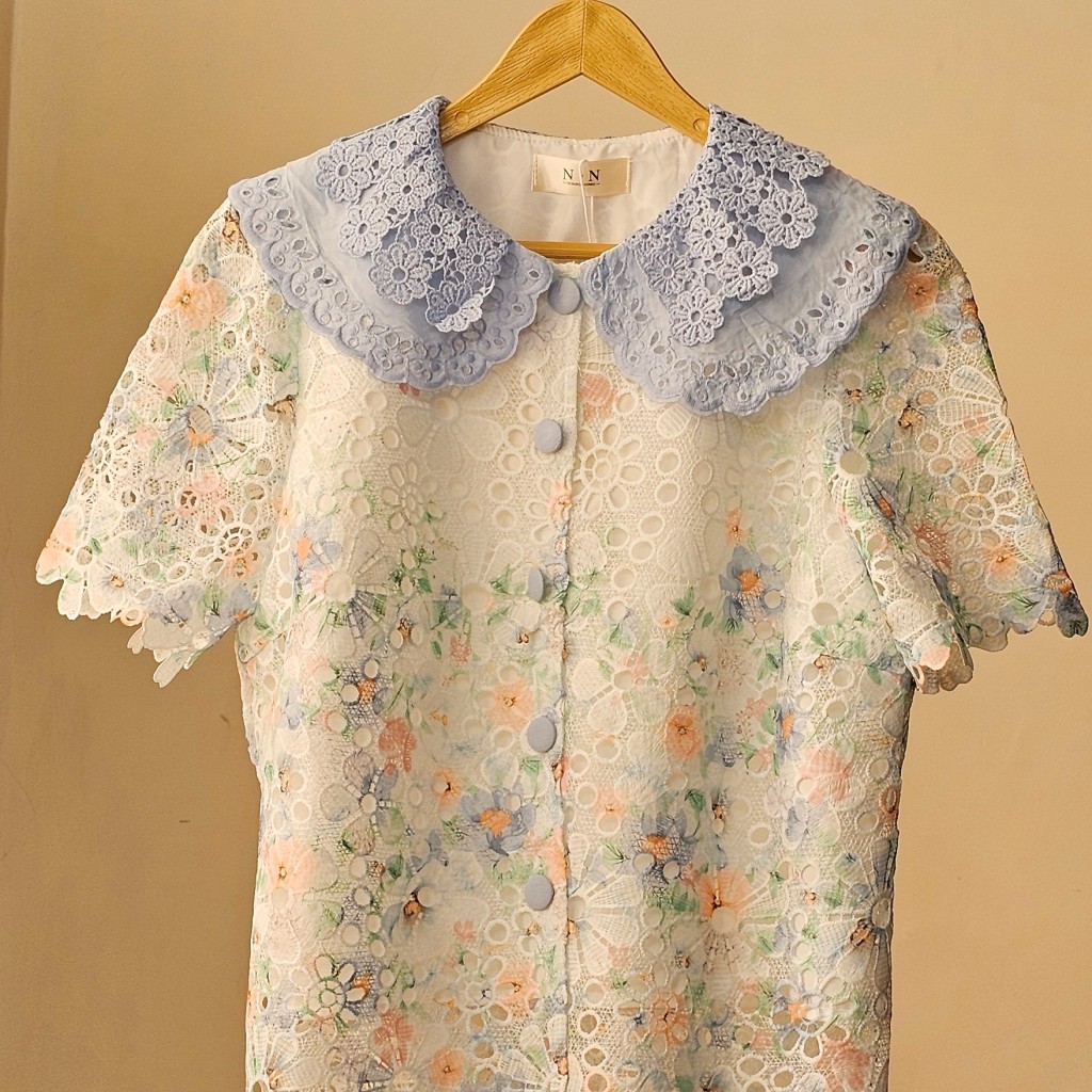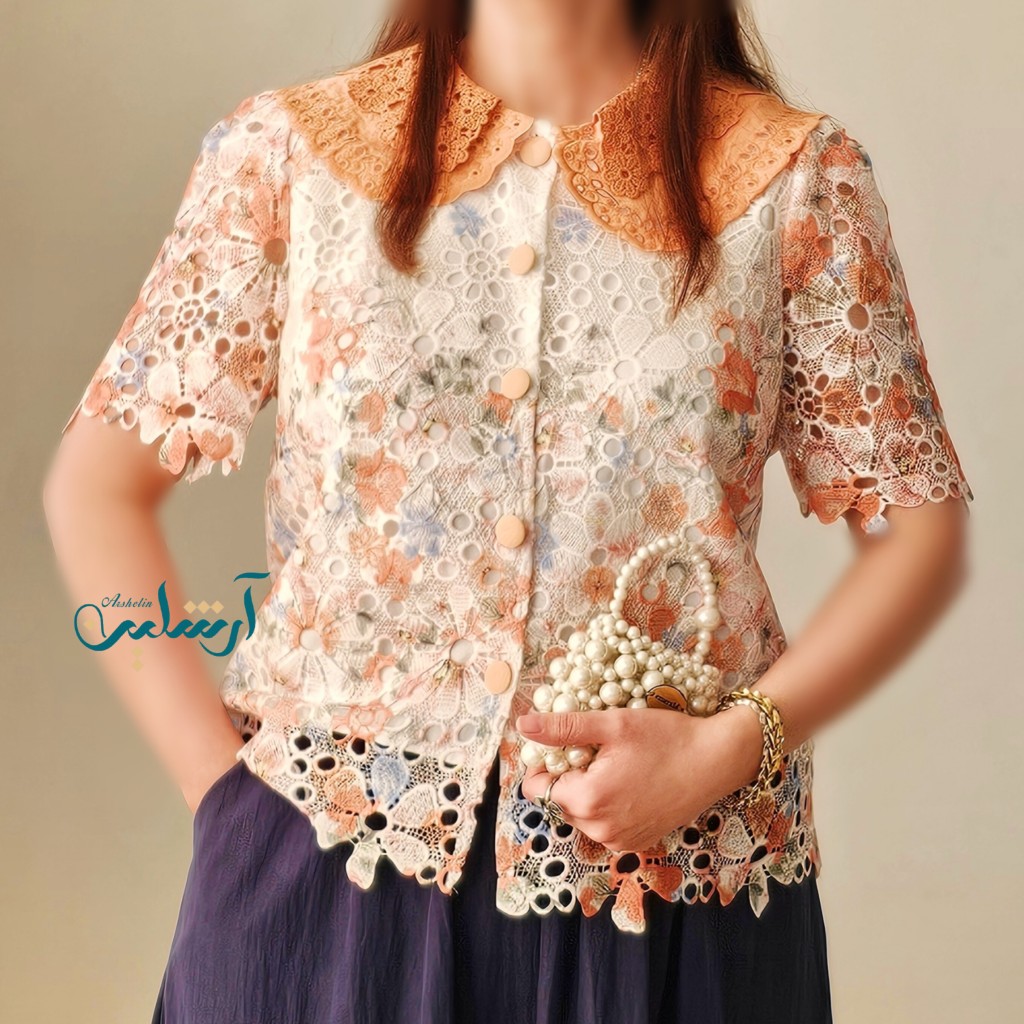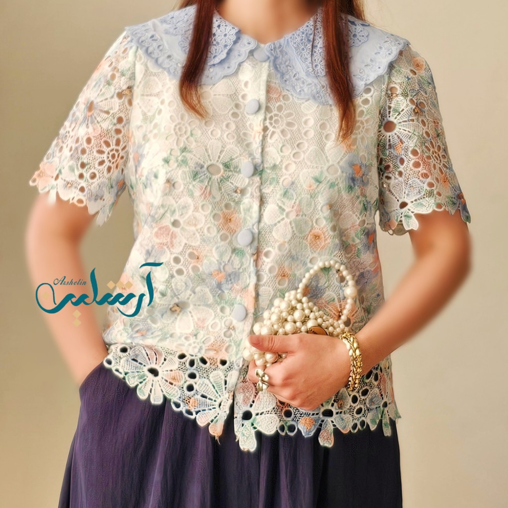 ✨️ شومیز وارداتی دانتل✨️پارچه دانتل،آستر دار، یقه شومیزخامه دوزی کار شده،پارچه کشسانی کمی داره✨️